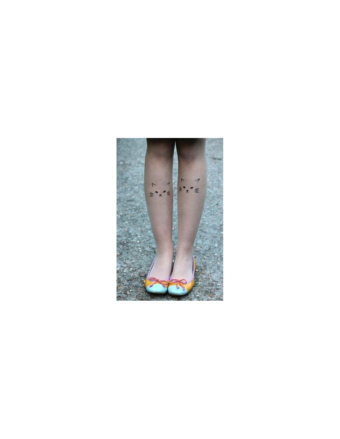 Vous aimez les chats et vous voulez le faire savoir, rien de plus rigolo que cette paire de collant effet tatouage, il y a une joli tête de chat sur chaque jambe.