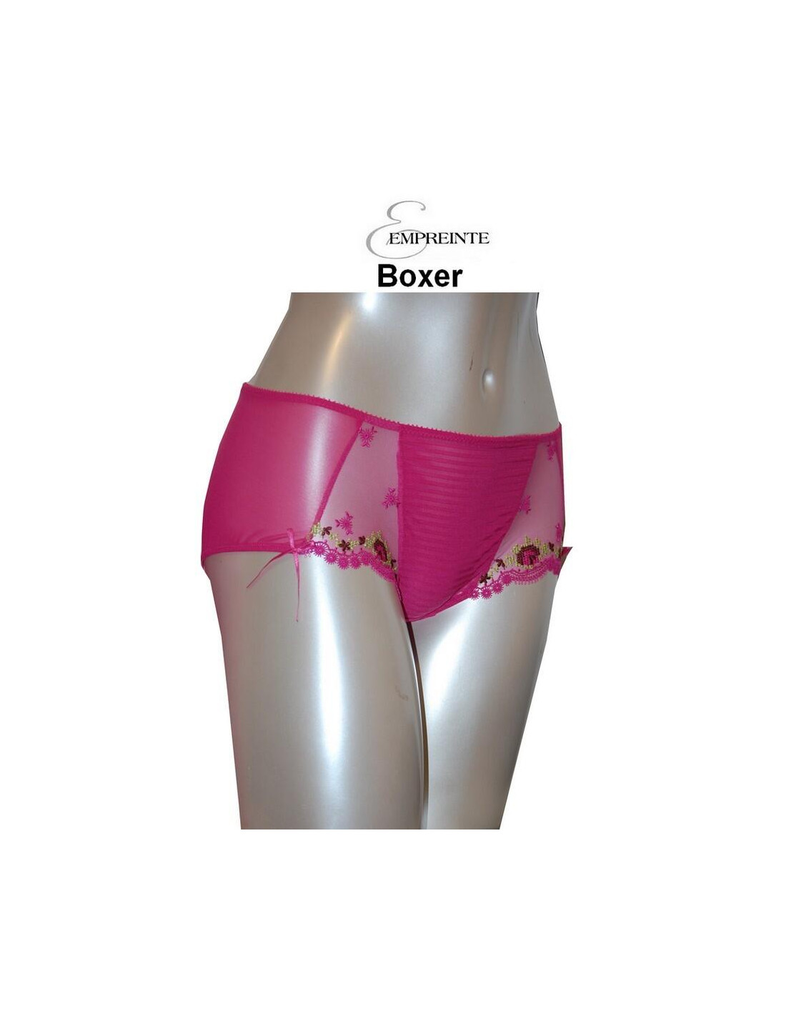 Une jolie couleur bien marquée, Très slip de séduction de a collection de lingerie Empreinte. Le boxer Empreinte Anastasia épouse parfaitement vos rondeurs voluptueuses . Ce boxer fait partie de la gamme séduction de lingerie empreinte , la matière est fine légère et rebrodée, cette lingerie est parfaite pour les femmes à jolie poitrines qui recherchent le galbe et le maintien dans une fine matière .