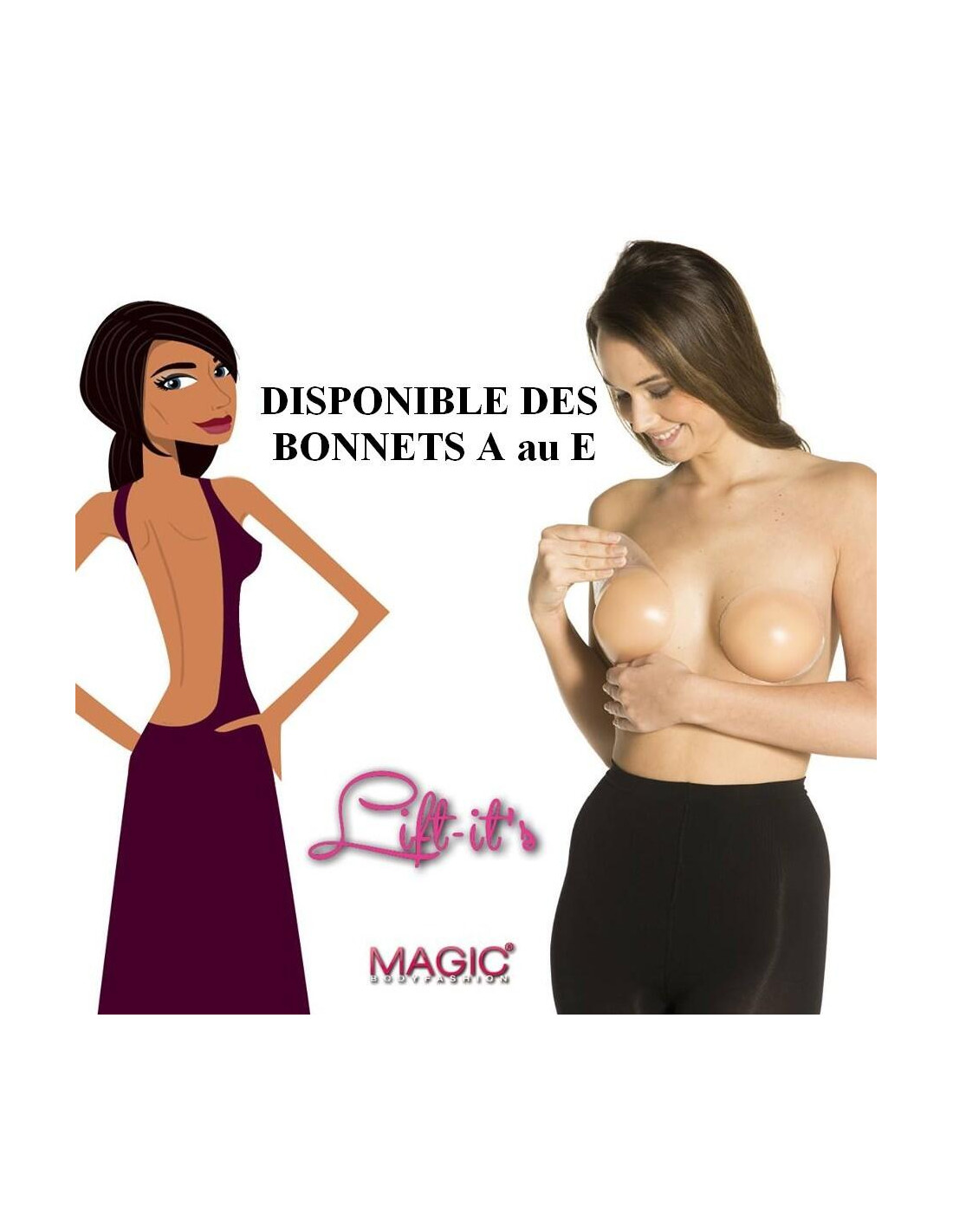 Le Bonnet en silicone auto-collant est une solution ingénieuse pour remplacer un soutien gorge sans dos et complétement invisible. Parfait pour les robes du soir ou les robes de mariées. Les MAGIC LIFT-IT'S sont fabriqués à partir de silicone de haute qualité. Ils bombent non seulement les seins, mais leur donnent en plus un volume supérieur d’au moins une taille. Faciles à poser, les bonnets en silicone offrent un résultat bluffant en soulevant graduellement la hauteur de la poitrine. Le tour est joué ! 1 paire par boîte, réutilisable de nombreuses fois. 100% silicone