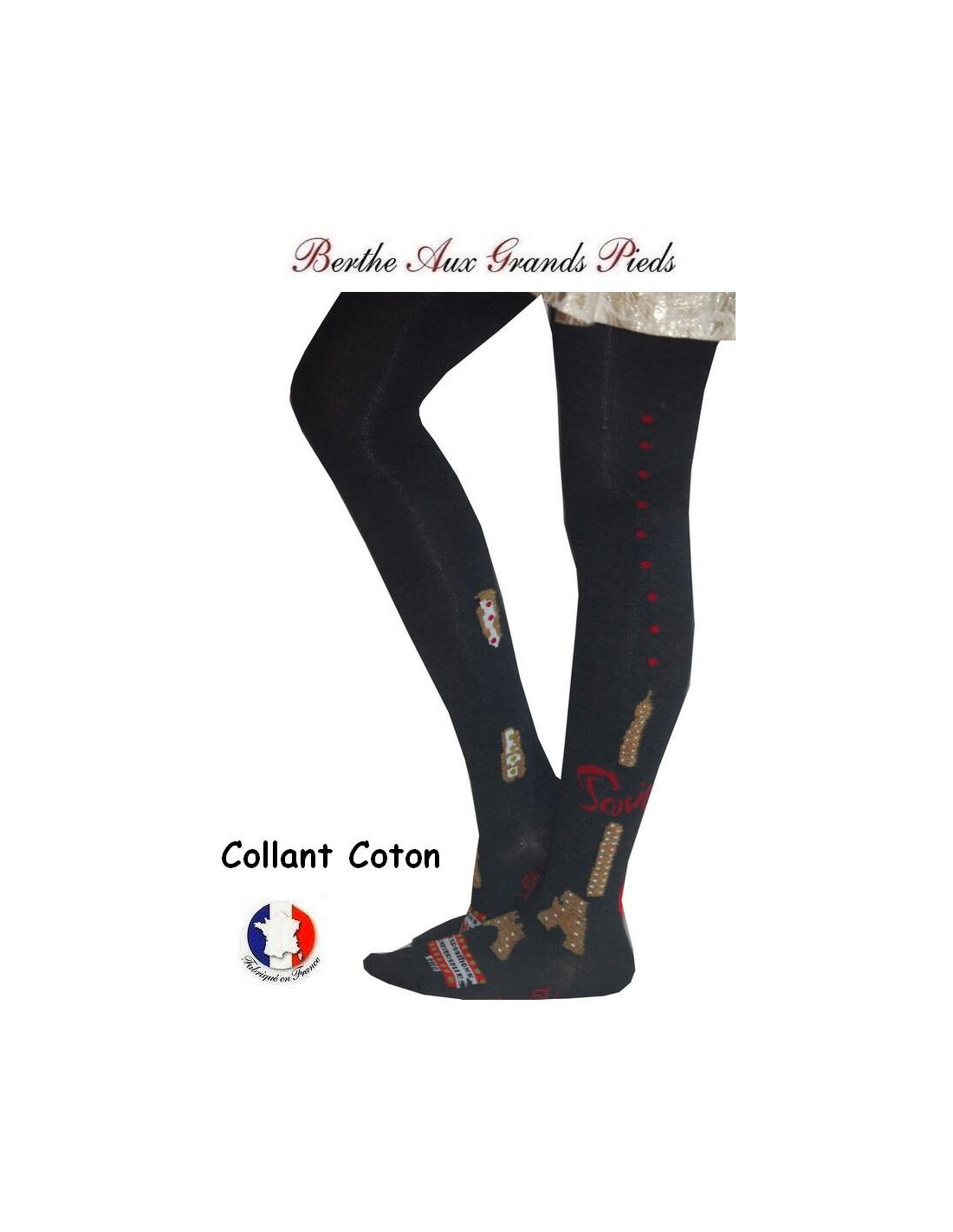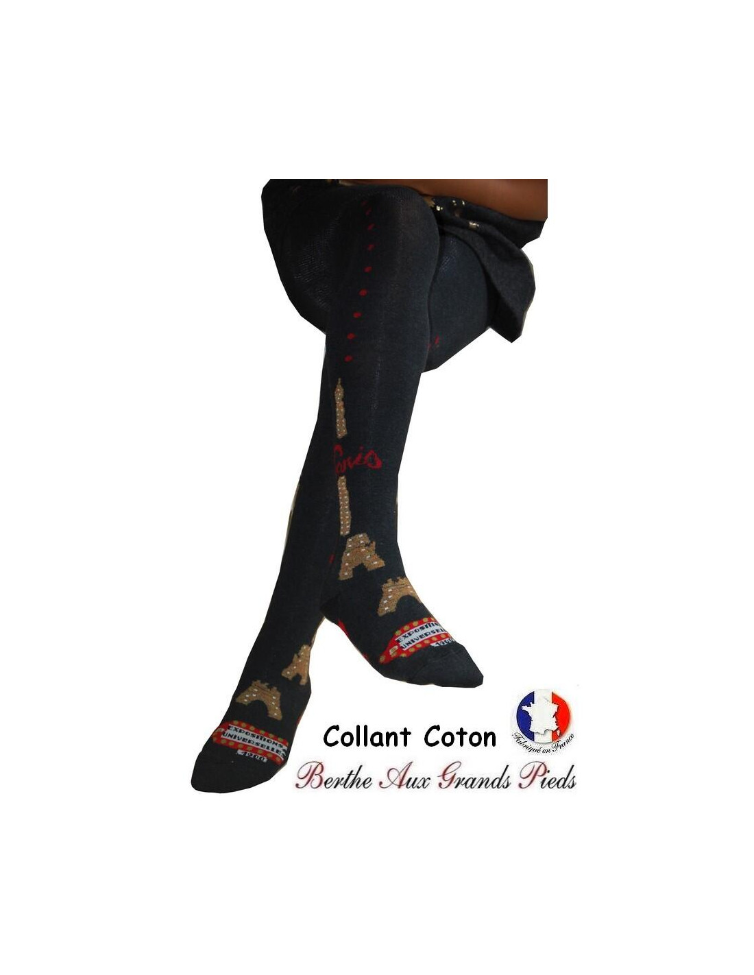 Le petit clin d'oeil du créateur de Berthe aux grands pieds à notre patrimoine historique, qui permet de dessiner une Jolie tour Effeil sur les jambes. La base Grise de ces collants en coton tricoté permet de compléter pas mal de tenue. Le genre de collant chaud que vous allez pouvoir porter tout au long de l'hiver pour celle qui sont adeptes du look robe ou jupes avec des bottines...