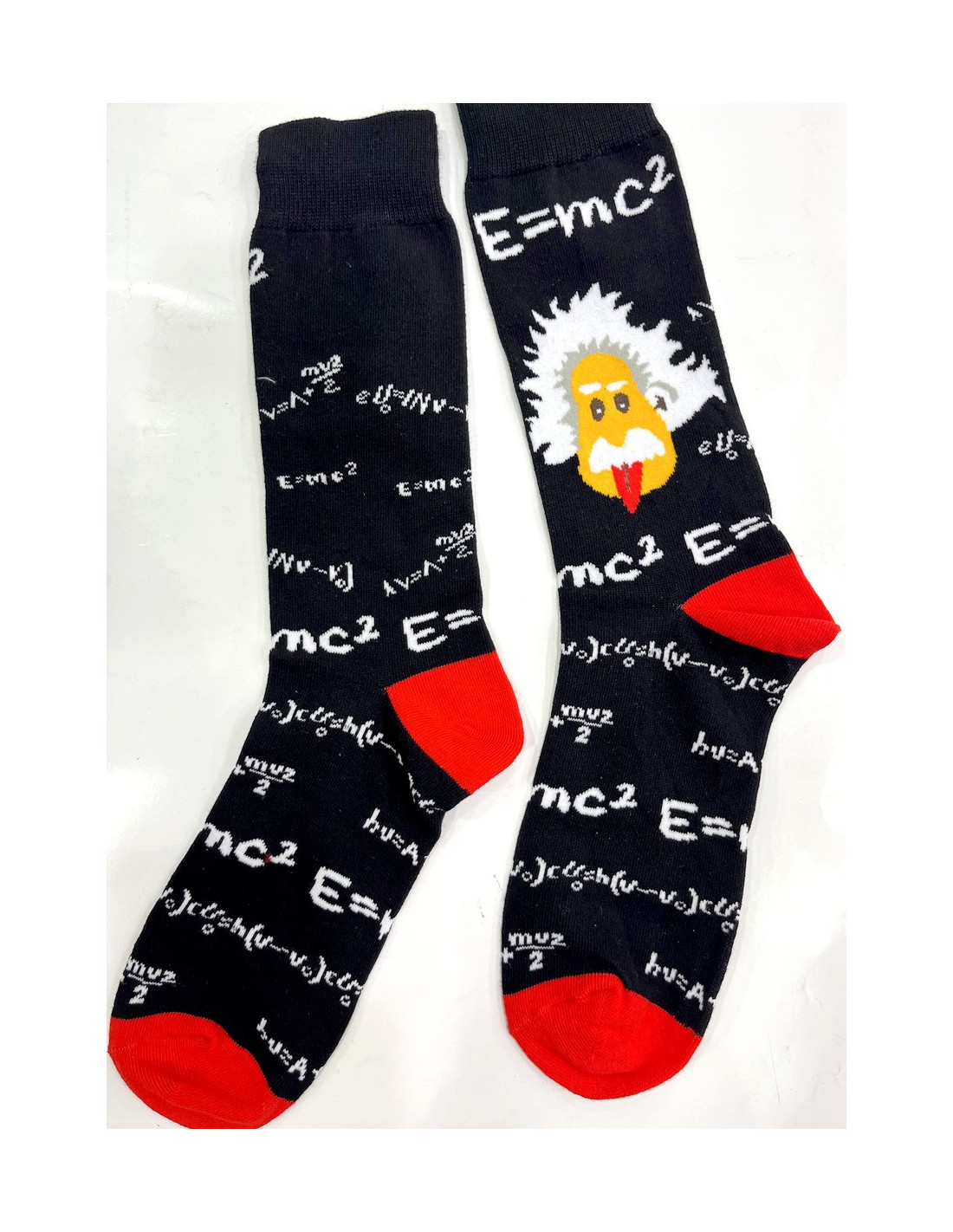 Chaussettes ludiques en base noire avec un portrait magnifiques de Albert Enstein