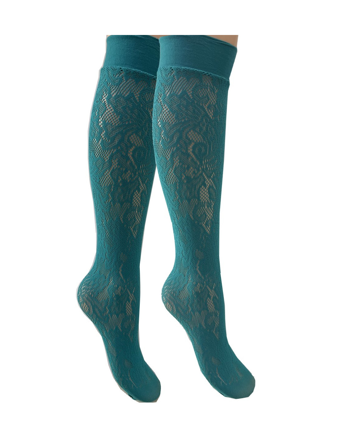 Mi bas dentelle Fleuris Vert bleu