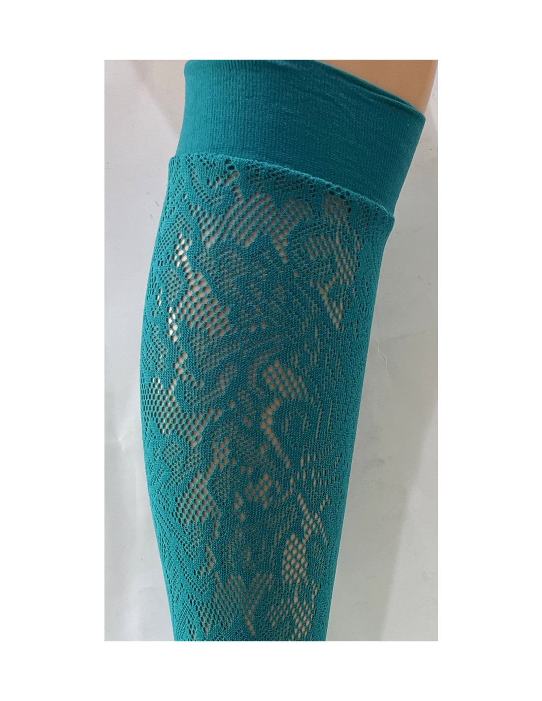 Ces jolies chaussettes hautes arrivent sous les genoux en microfibre dentelle vert