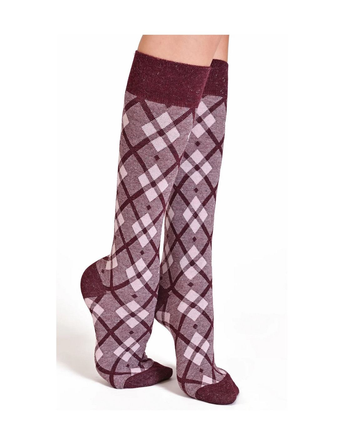 Chaussettes douces qui montent sous les genoux d'un bel effet arlequin à losanges tendance
