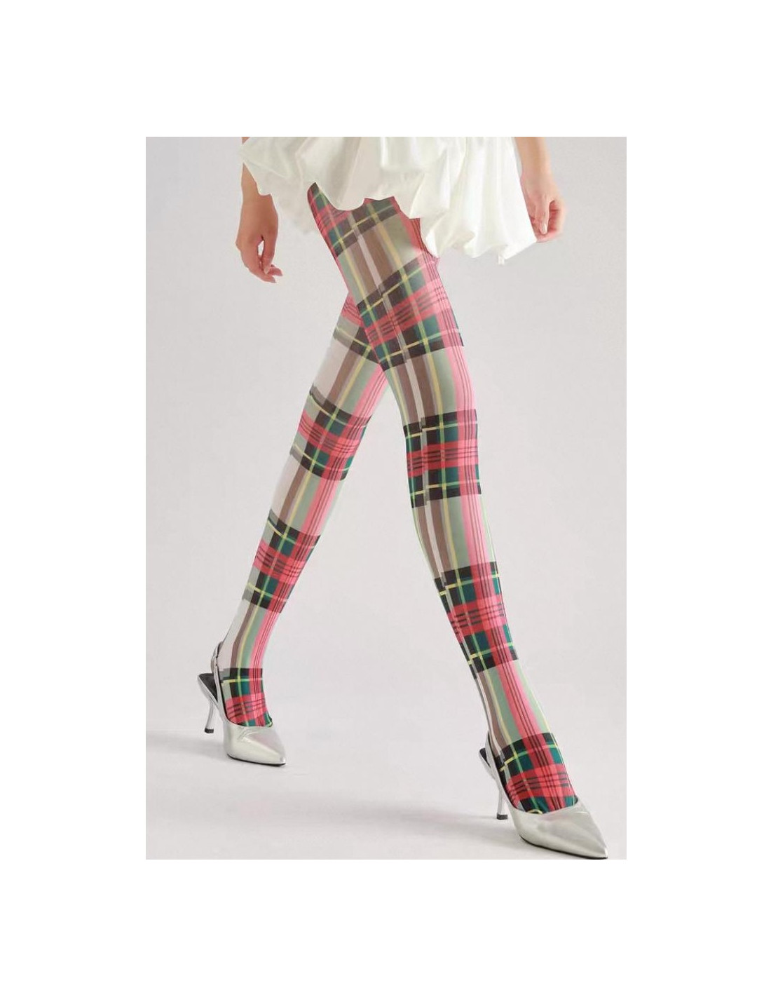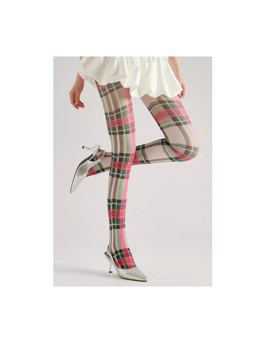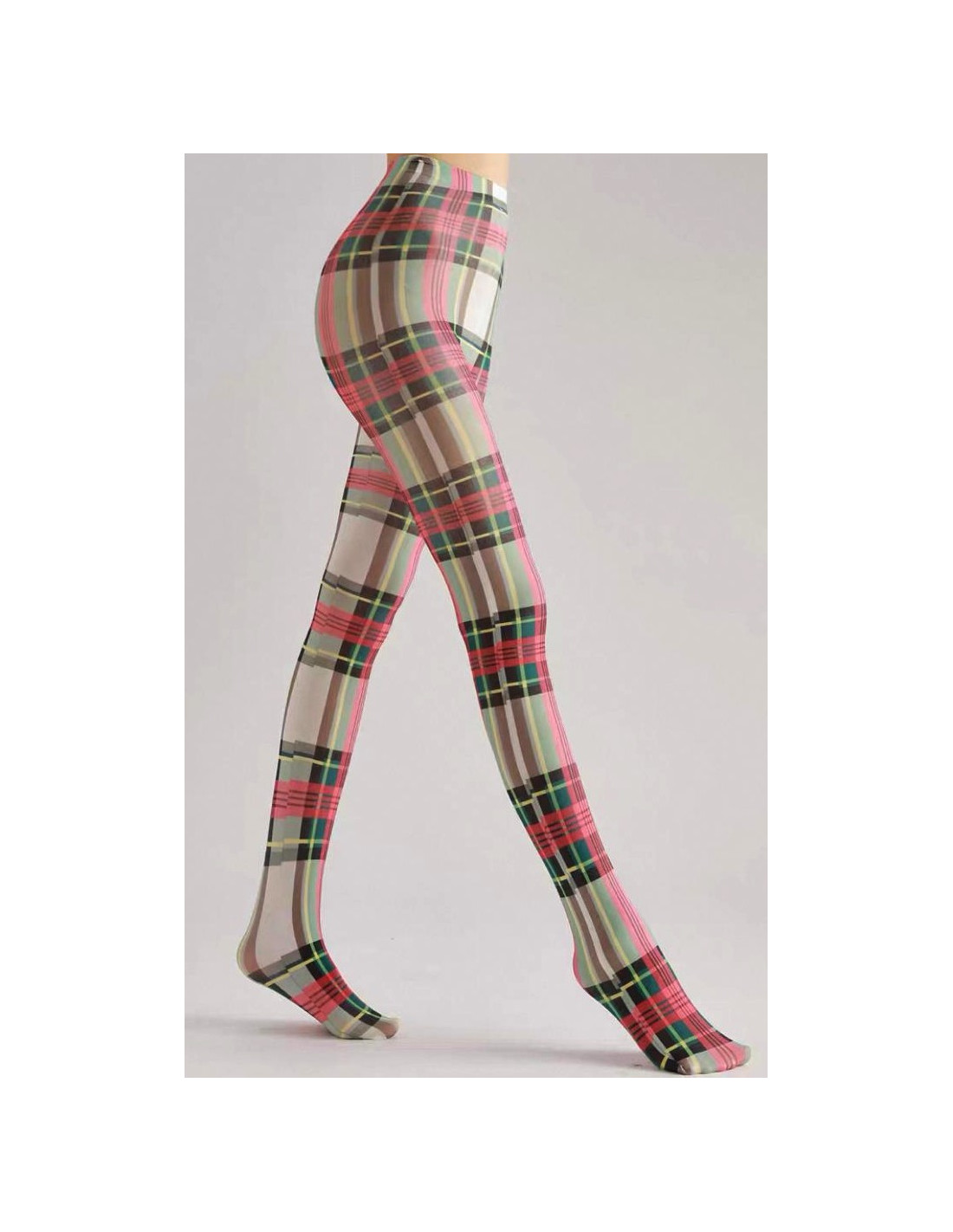 collant opaque Gris Tartan vert et Rose
