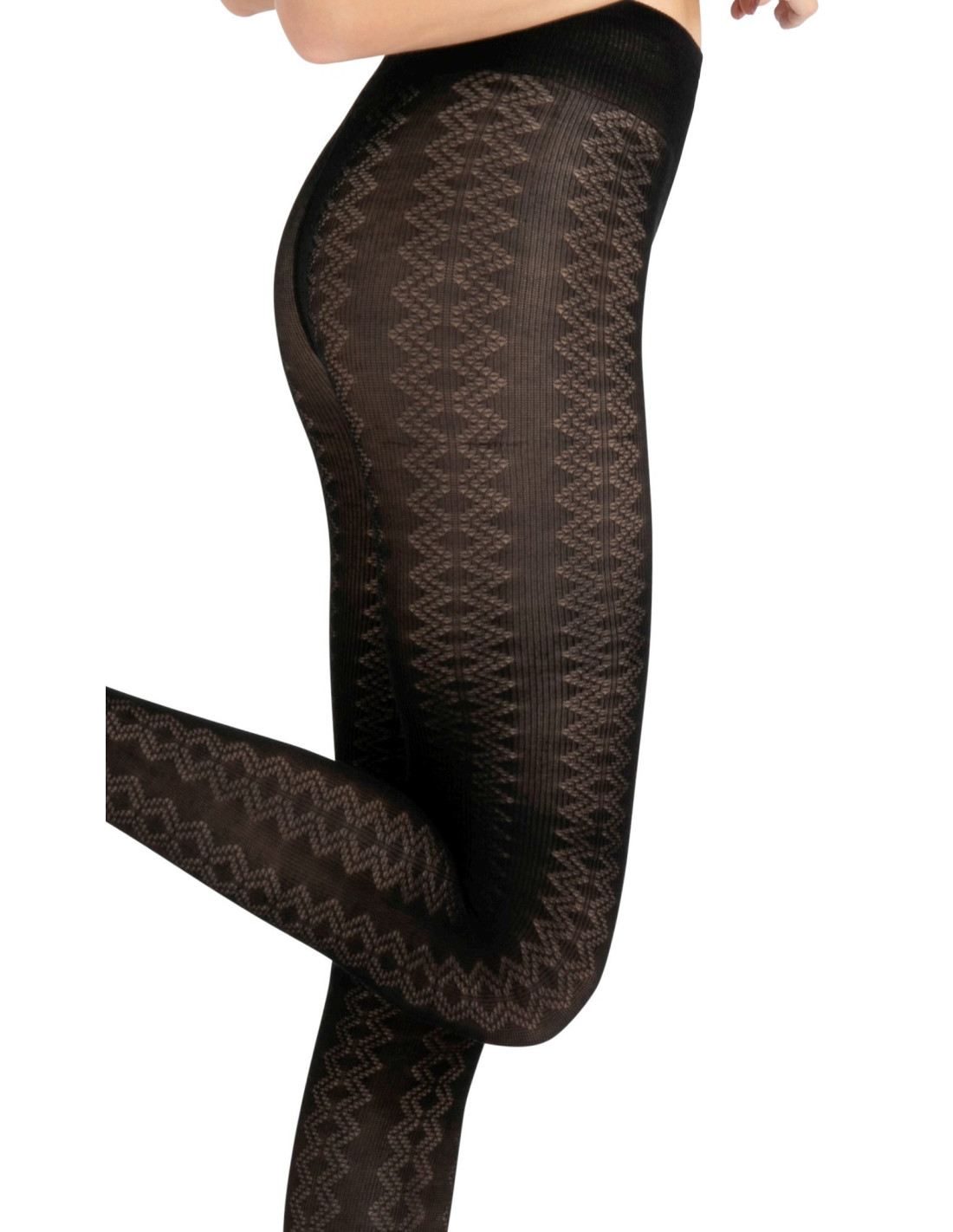Collant d'hiver fin et élégant en Cachemire douc et chaud, ces collants sont tricotés de façon fines et renforcées et ornent les jambes d'un élégant motif géométrique fantaisie.