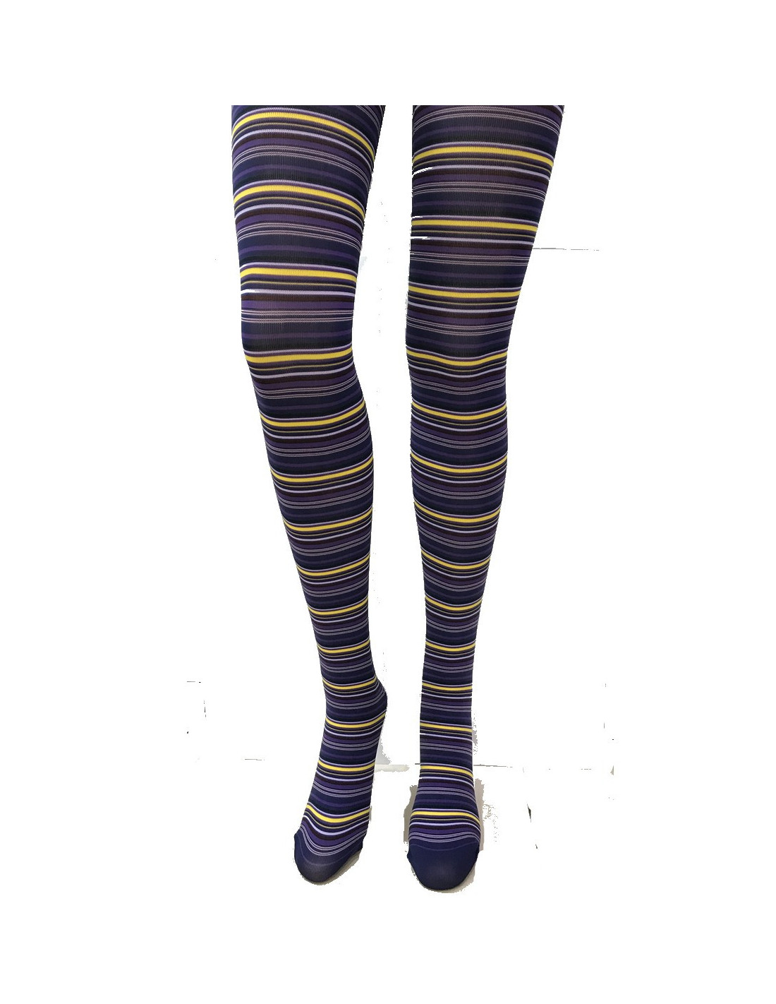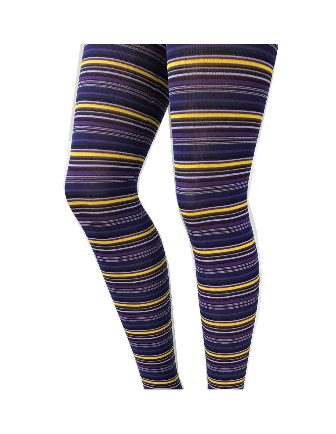Collant Violet Tendance à fines rayures jaunes