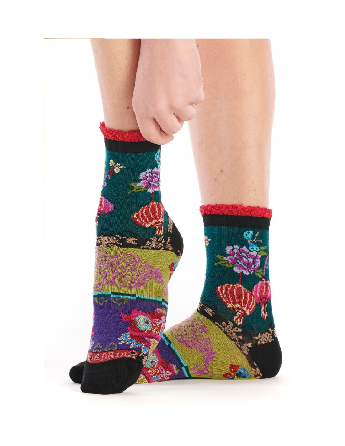 Chaussettes Dub et Drino Chinoiserie lanterne à fleurs