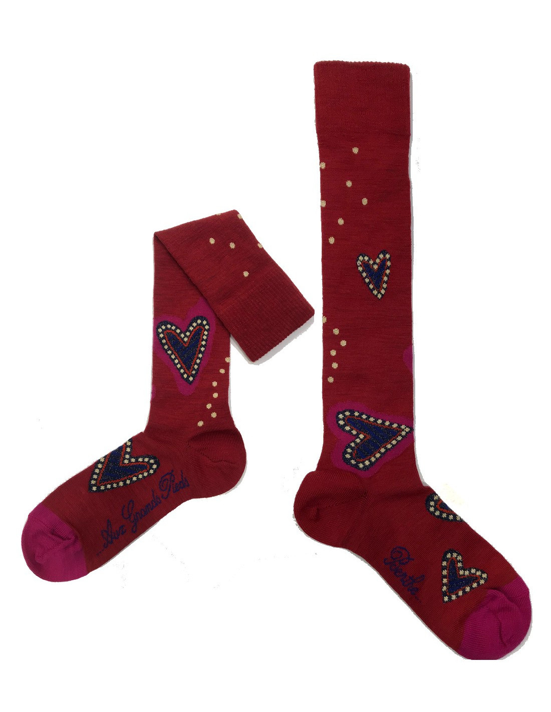 L'Éclat des Bijoux d'Amour Ce qui distingue vraiment les Mi-bas Berthe aux Grands Pieds Laine "Bijoux des Amoureux", ce sont les bijoux exquis qui ornent leur base rouge. Telles des parures précieuses, ces chaussettes hautes sont parées de cœurs envoûtants, façonnés avec la minutie d'un orfèvre. Chaque cœur est un symbole de l'amour et de la connexion, ajoutant une touche de romantisme et d'élégance à chaque pas que vous faites. L'Art de la Création Française La France, berceau de l'art et de la mode, est le lieu de naissance de ces Mi-bas Berthe aux Grands Pieds Laine "Bijoux des Amoureux". Chaque paire est une pièce maîtresse de créativité et de qualité, portant fièrement l'étendard du "Made in France". Ces chaussettes fantaisie ne sont pas seulement des accessoires, mais des témoignages de l'artisanat français et de l'engagement envers l'excellence.