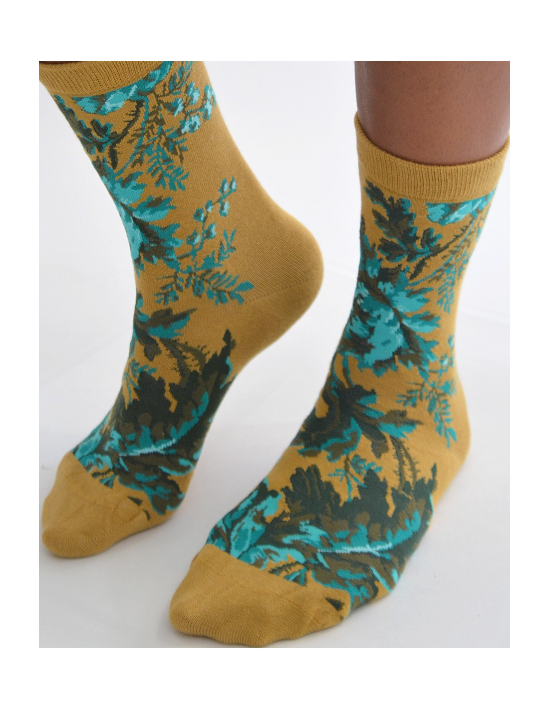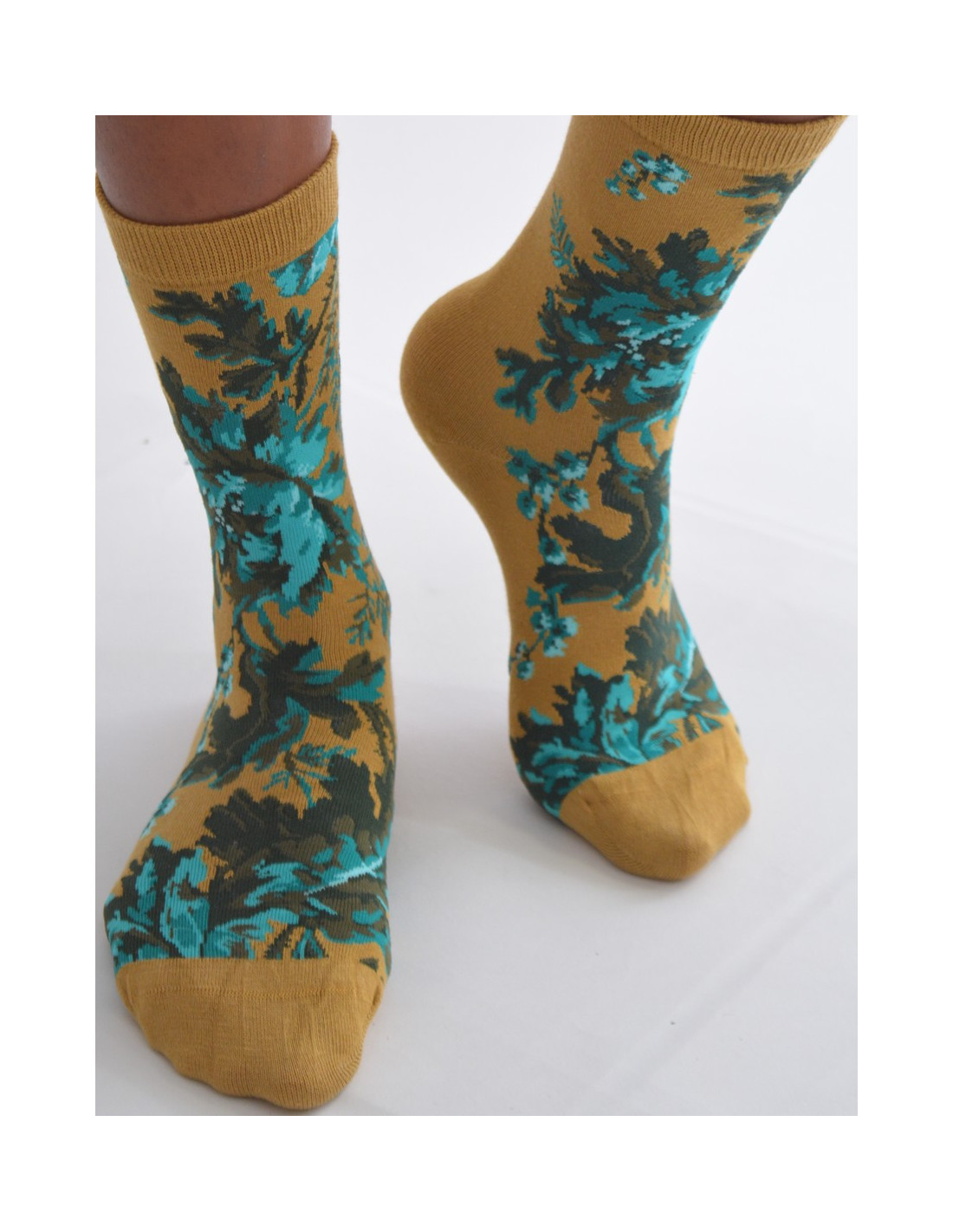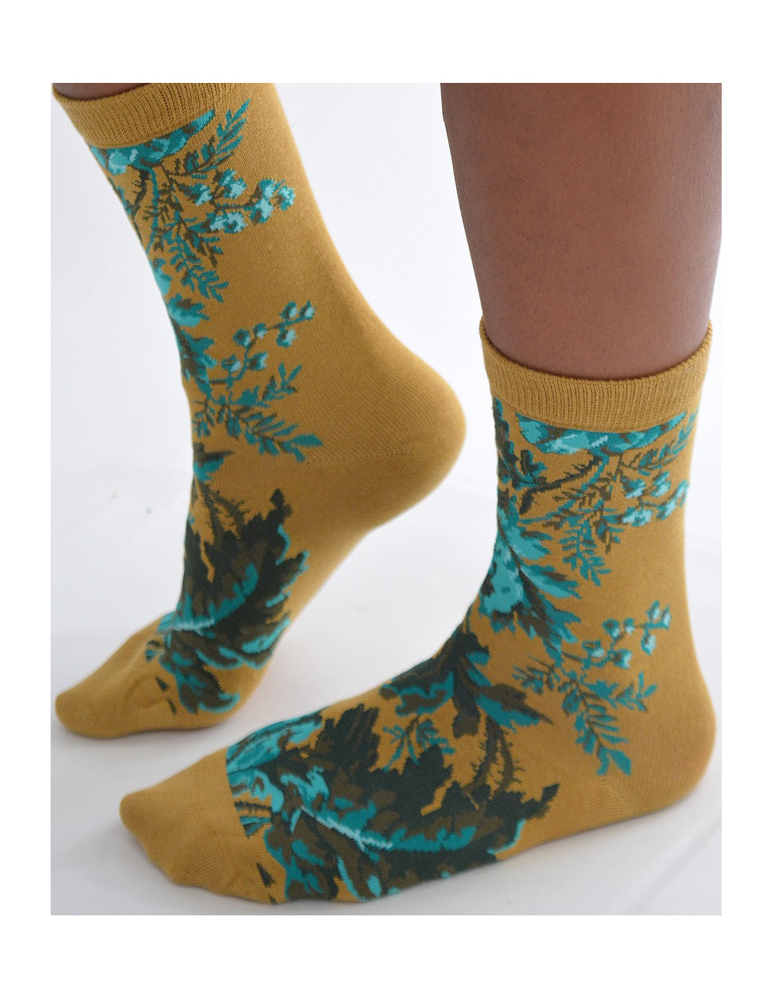 Chaussettes Tendance Moutarde à Fleurs Turquoise
