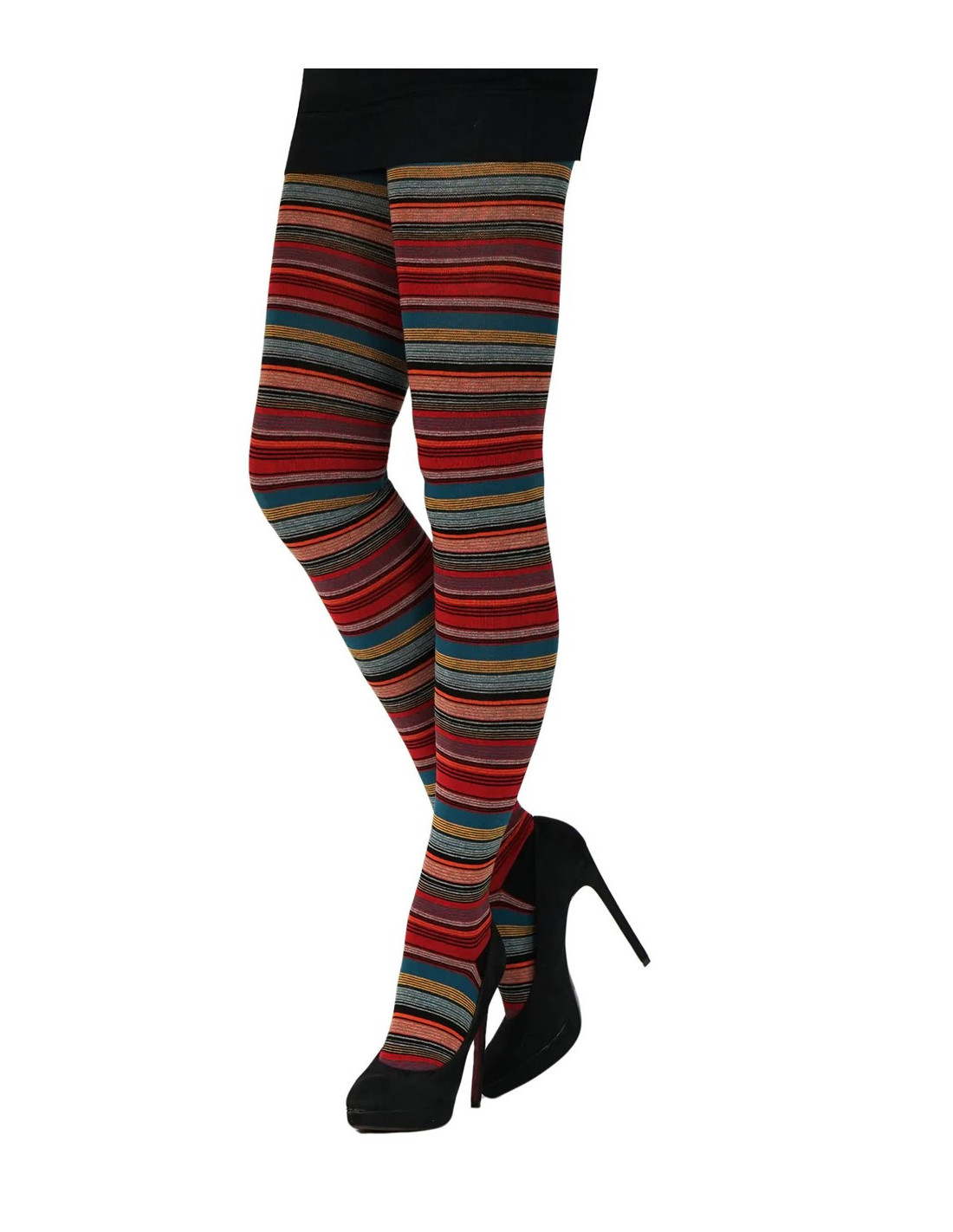 Collant fantaisie Cronert avec de belles rayures fines de couleur tendance bleu vert jaune .
