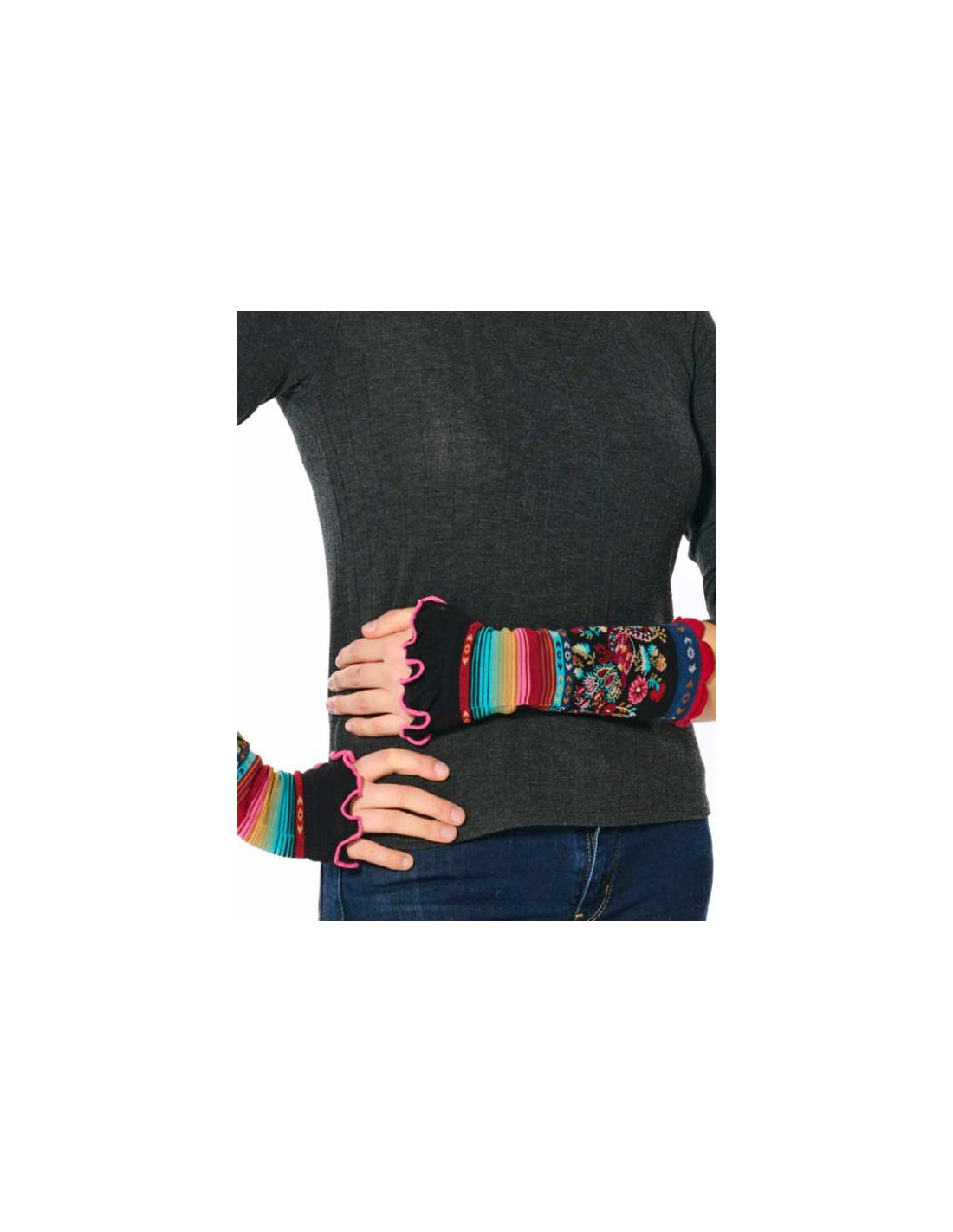 Ces mitaines, à la fois pratiques et esthétiques, habillent vos mains et avant-bras avec un motif raffiné qui associe des touches de couleur vibrantes à la sobriété du noir. Idéales pour illuminer vos journées d’hiver et compléter vos tenues avec une note de fantaisie.