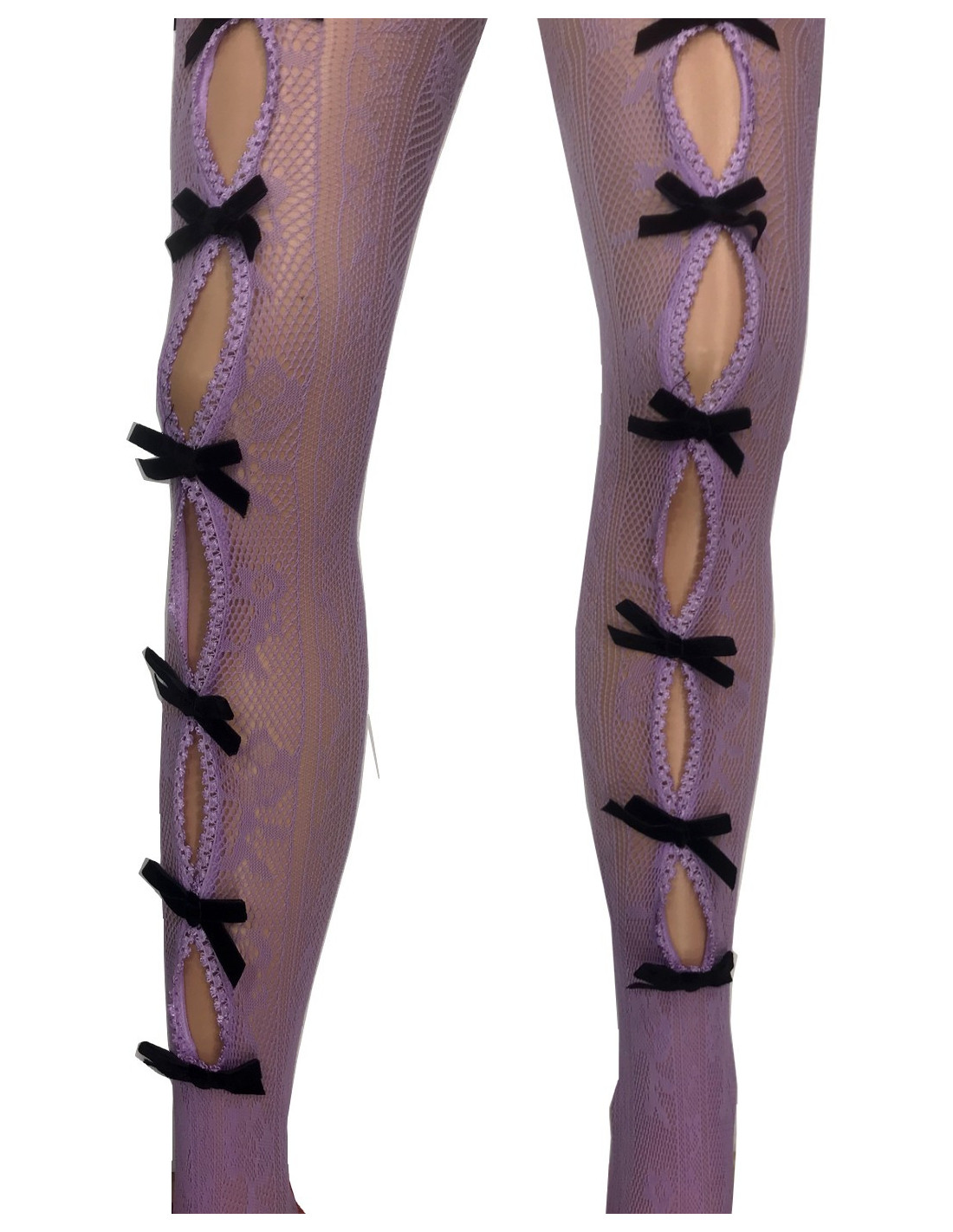 Collant dentelle verticale ouvert à nœuds de velours