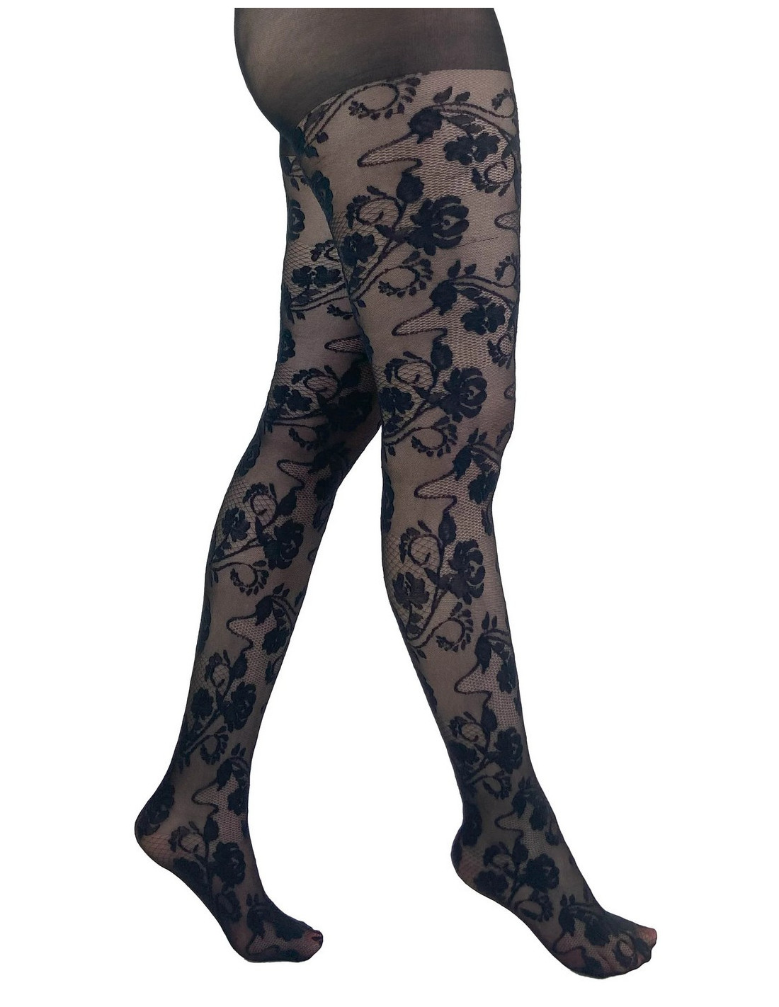 Collant fin dentelle fleuris élégant
