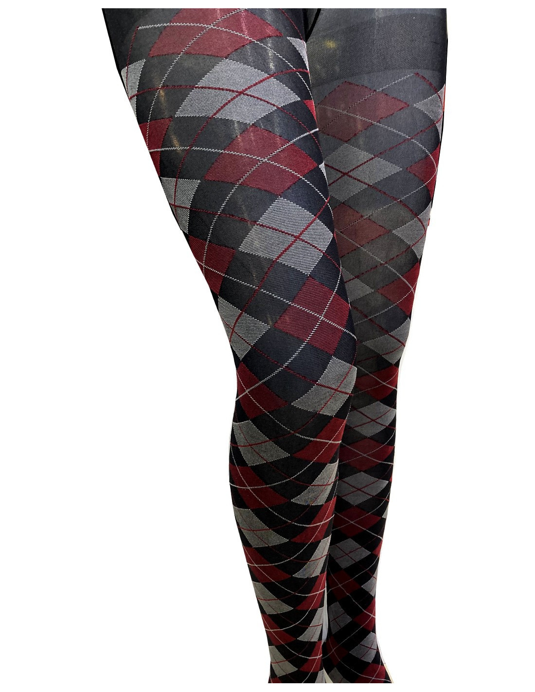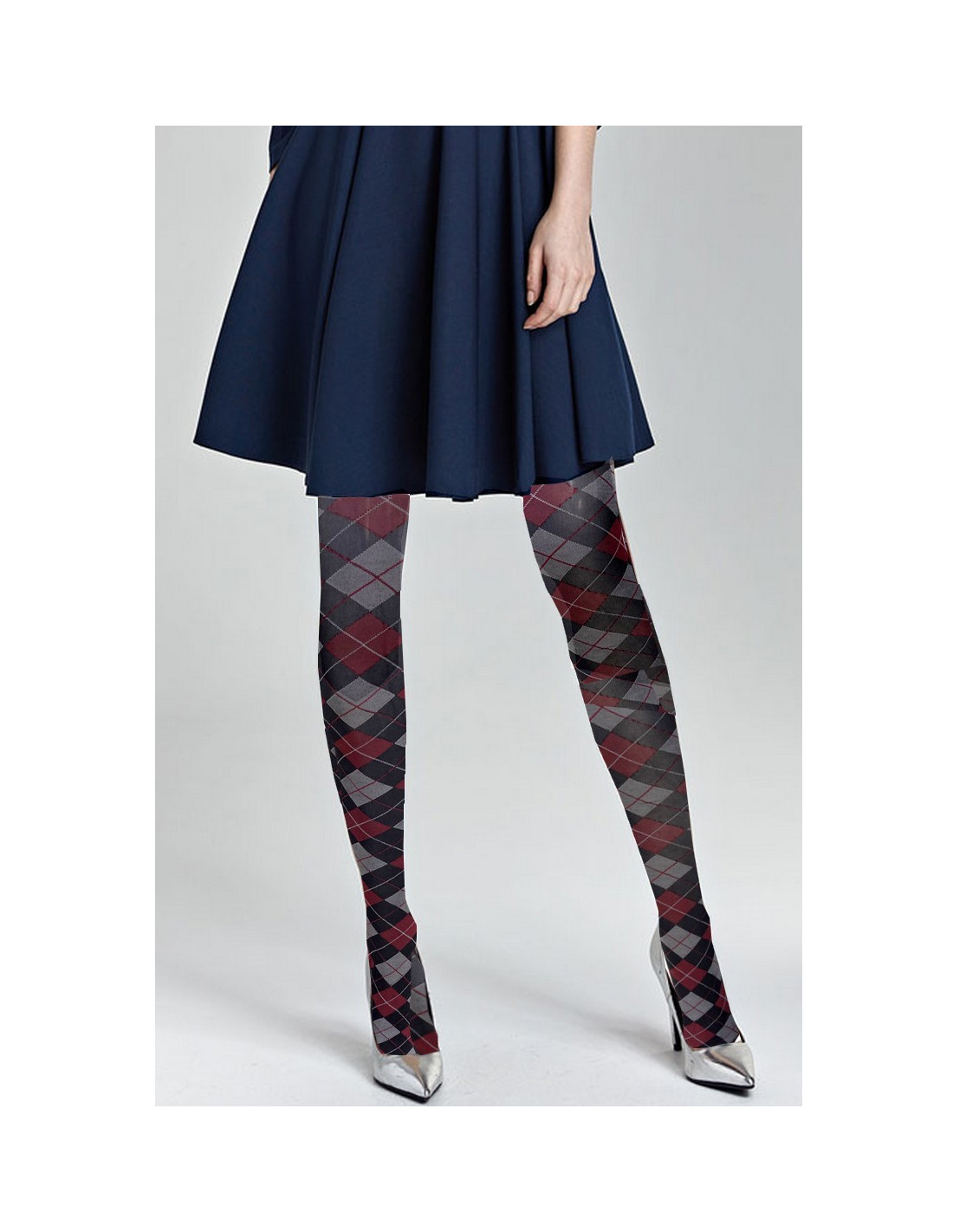 Collant élégant tendance a losanges résolument mode, tendance marine bordeaux.