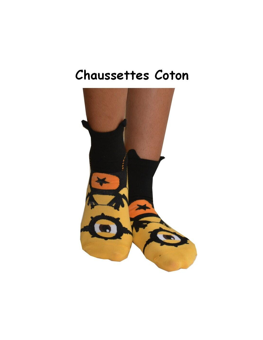 Ces jolies chaussettes base noires représentent les personnges comiques et hilarant de moi moche et méchants les minions, le spécimen noir est particlièrement ludique , le petit minion est cyclope ce qui ne l'empêche
