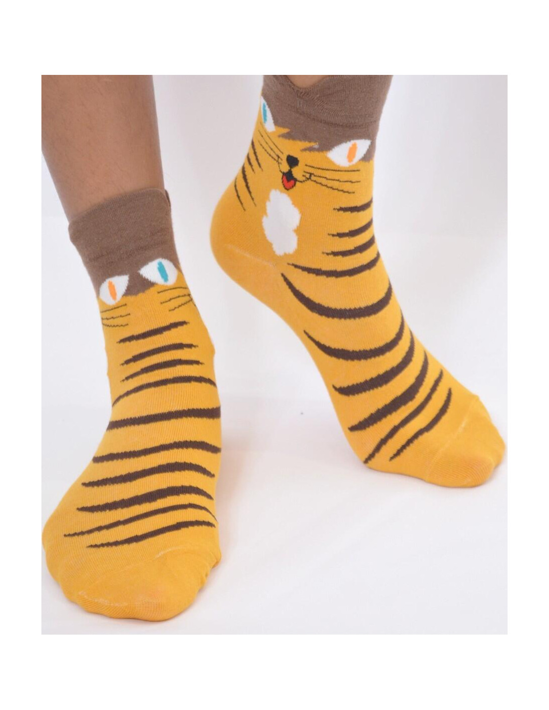 Ces très jolies chaussettes en coton sont prticulièrement souples et agréables à porter. Ce chat tigré a les yeux de couleurs différentes, le motif félin de ces chaussettes est particulirement ludique.