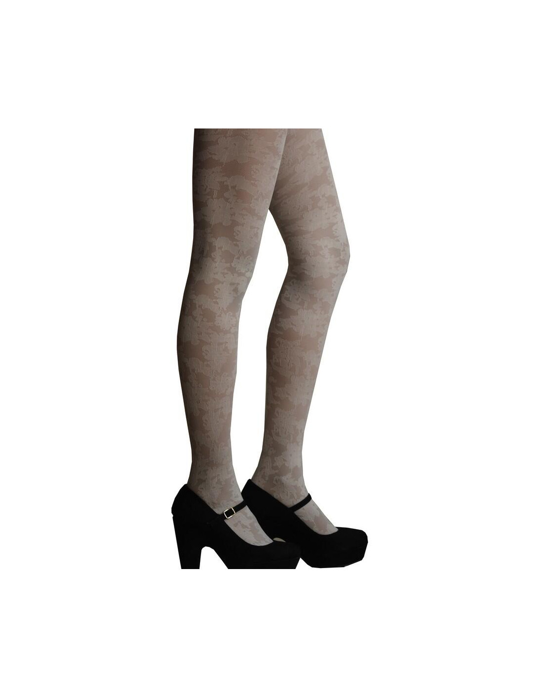 Ce collant en tulle fin est décoré d'un joli bouquet de fleurs baroques ton sur ton, des collant qu'on a plaisir à porter tant ils font de belles jambes. Ces collants sont décorés d'un subtil motif en tulle brodé de fleurs discret et subtil ce collant dévoile son aspect élaboré dans la proximité de la silhouette, à moyenne longue distance ce collant semble opaque , assez résistant d'ailleurs.