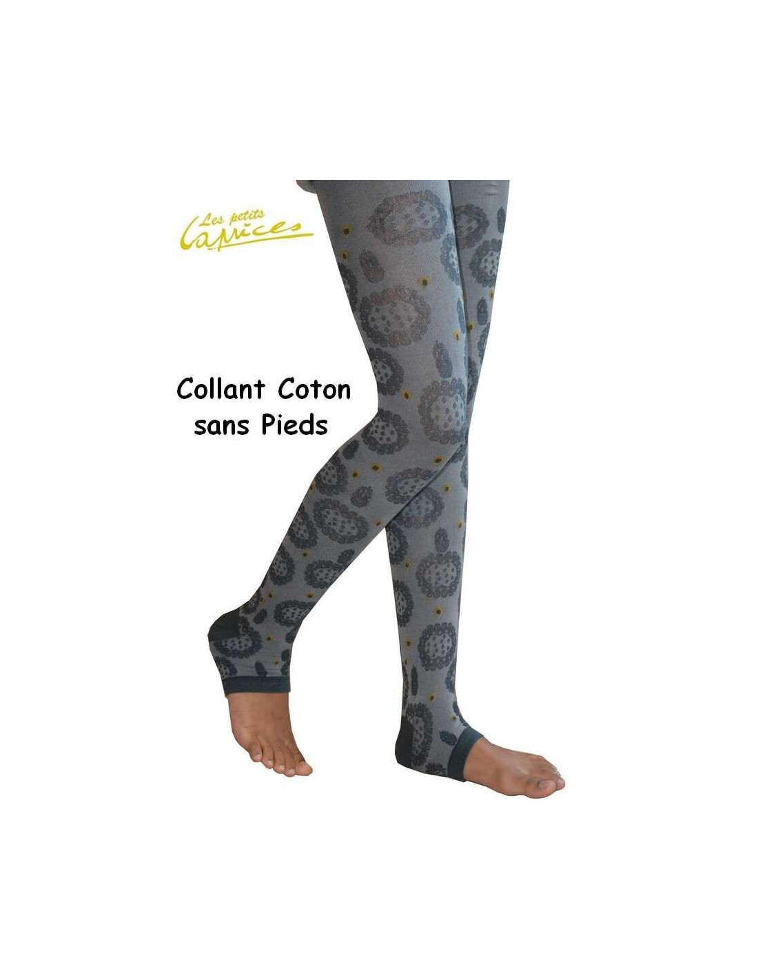 Ce collant sans orteils est en coton fin subtilement décoré d'un motif floral en ton sur ton gris classique moutarde, ce collant à motifs discret et fantaisie fait partie de notre gamme de collant sans pieds en coton, parfait pour l'hiver il tient bien à la jambe, parfait pour éviter de porter des collants qui s'usent trop vite sur les orteils
