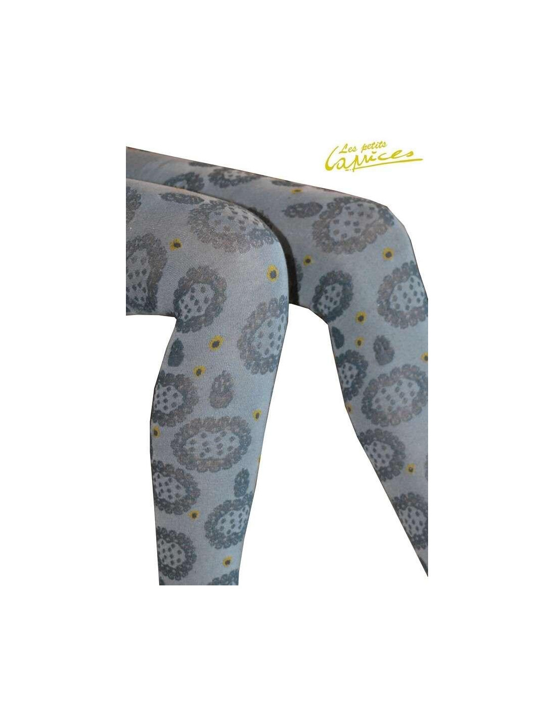 Collant sans pieds Fleurs grises coton