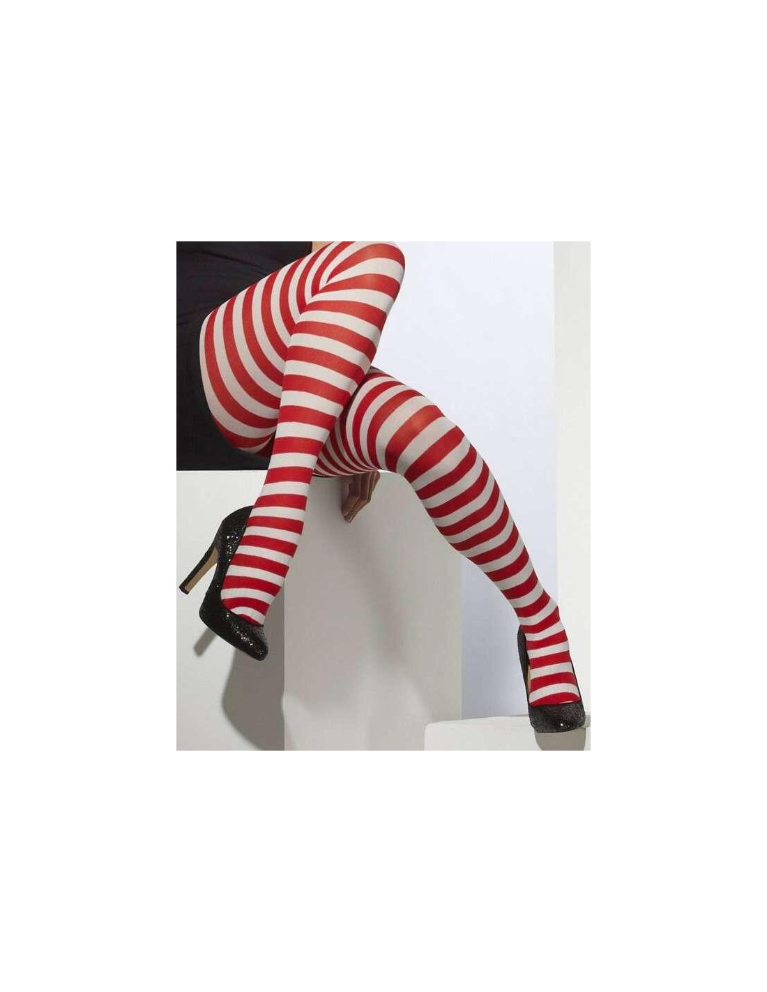 Ce collant ludique en rayures fines rouges et blanches est parfait pour ne pas passer inaperçus, pour se déguiser sur le thèm de noel c'est pas ma non plus....