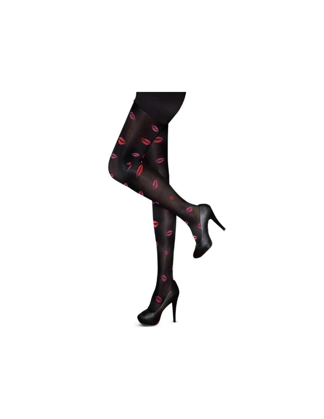 Ces collants noirs opaque sont décorés de jolis bisoux en rouges et roses, c'est très mignons sur les jambes. Le rouge et roses sur fond noir est parfait pour mettre une touche de couleur dans les tenues sombres.