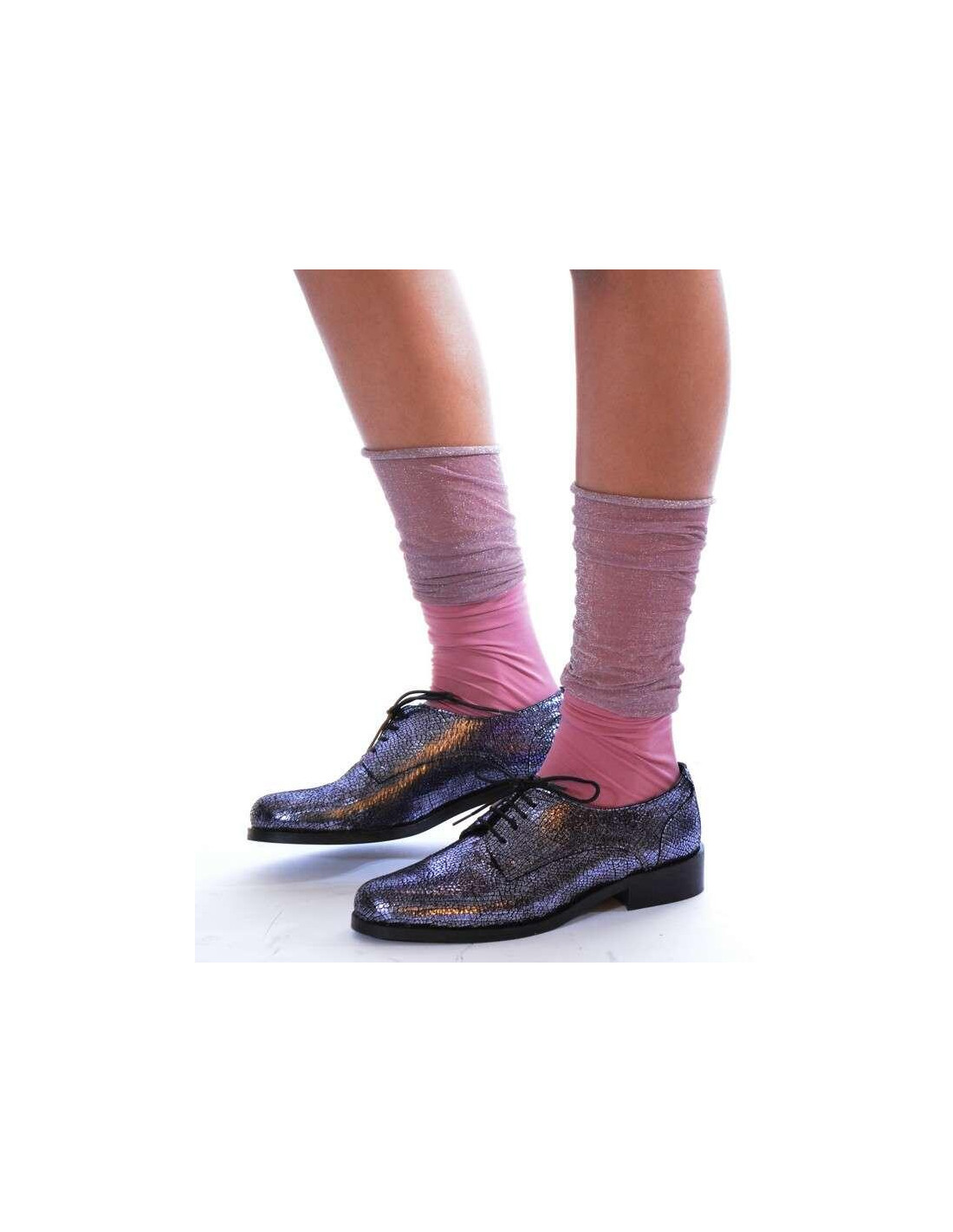 Chaussettes rebords plissé lurex rose