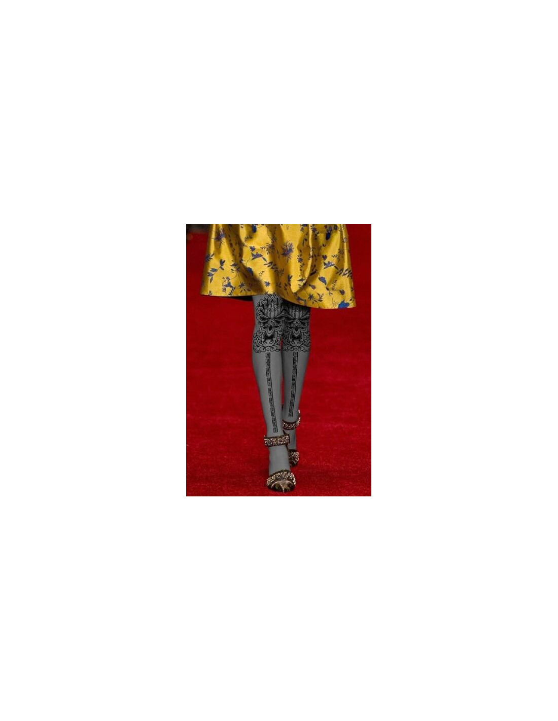 Ce collant tendance gris fondu d'aspect gris nuancé décore les jambes de rouages de boulons et de schémas mécaniques très ludiques. Cette composition originale transforme les jambes en un délire psychédélique et mécanique.