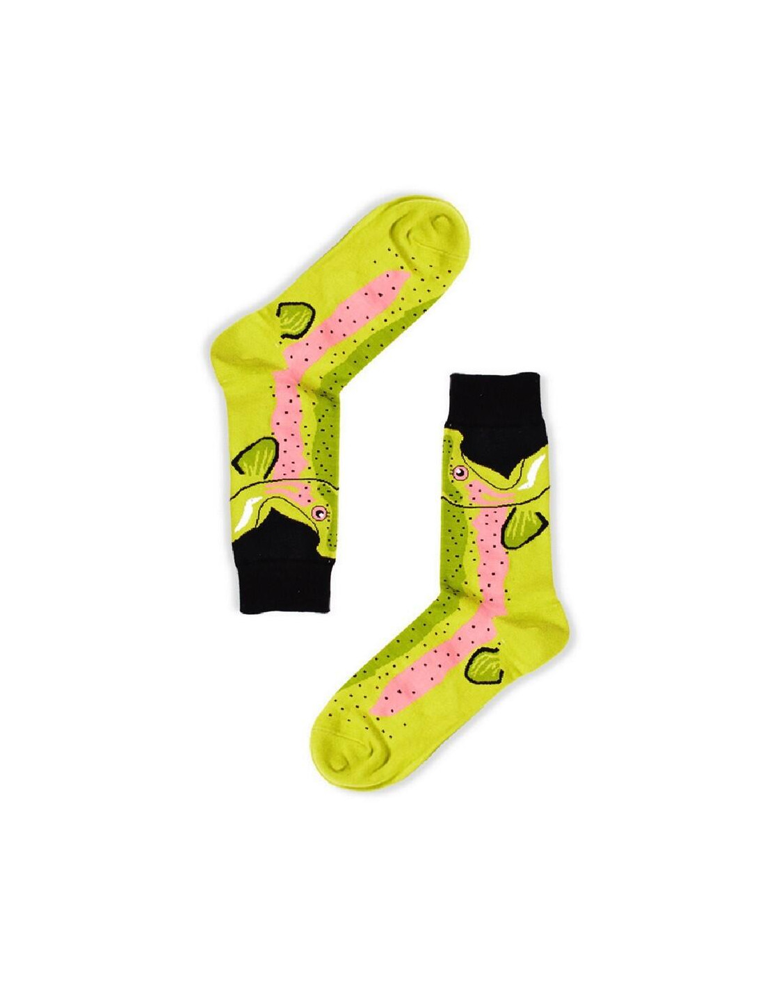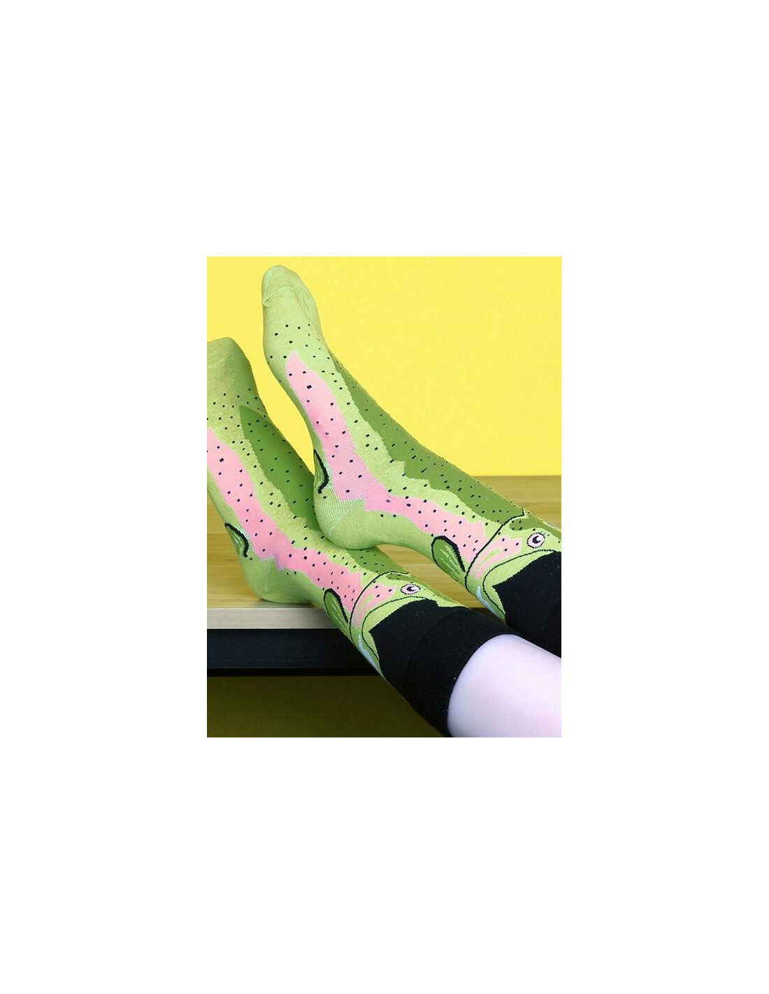Chaussettes délires et rigolotes ornées de poissons et de tortues , on ne le dirait pas comme çà mais ce ne sont que des prédateurs de petits poissons, c'est ludiques et colorées comme les Belles chaussettes qu'on aime chez boutique Caprices.
