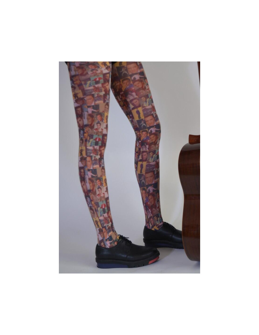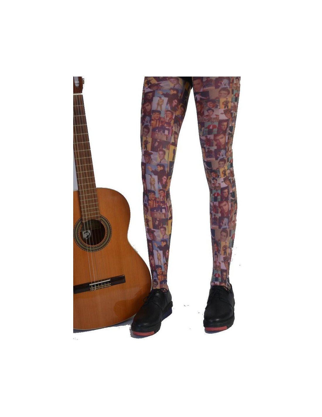 Les jambes sont décorées de  une de magazine de "the king" une vrai légende du rock. Qui ne connait pas Elvis Presley, Très rock ces collants sont très rigolos à porter sur les jambes. Des collants très cool, Let's rock.