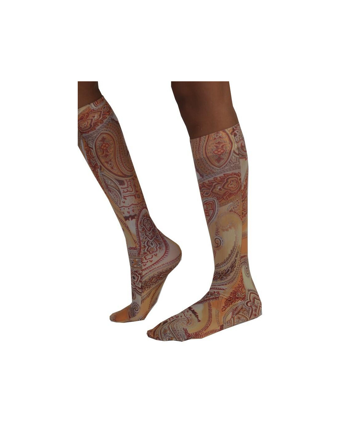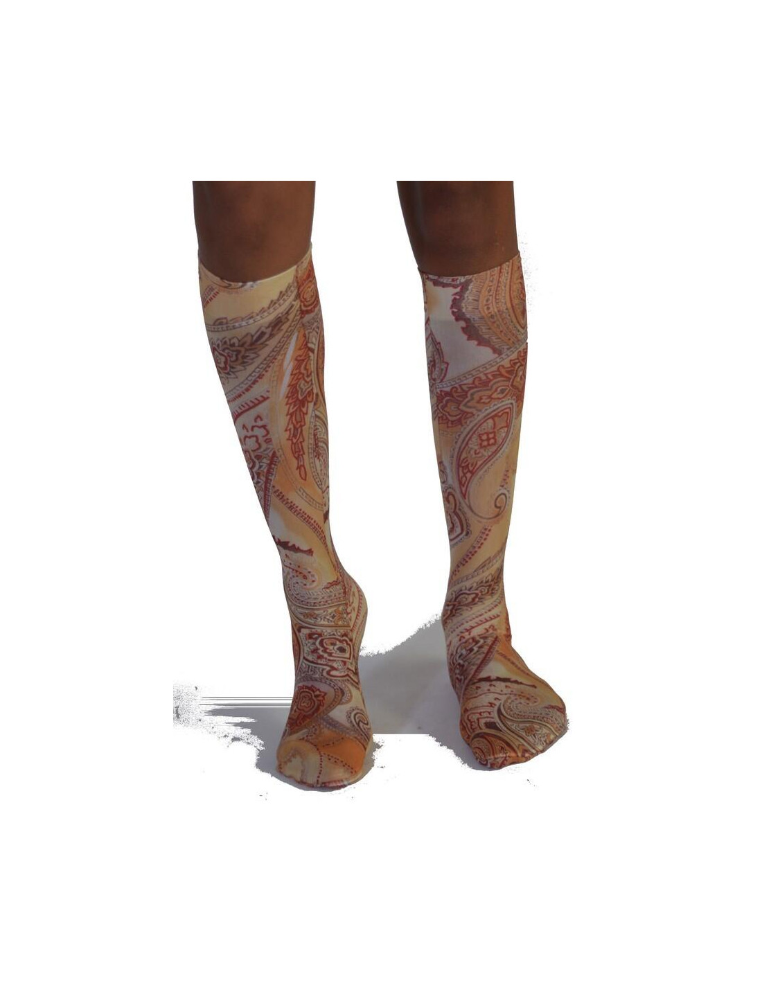Des jolis motifs cachemire psychédélique jaunes décorent les chaussettes avec originalité, c'est comme un carré hermes  très tendance pour mettre aux pieds dans la bonne humeur la plus sympatique.