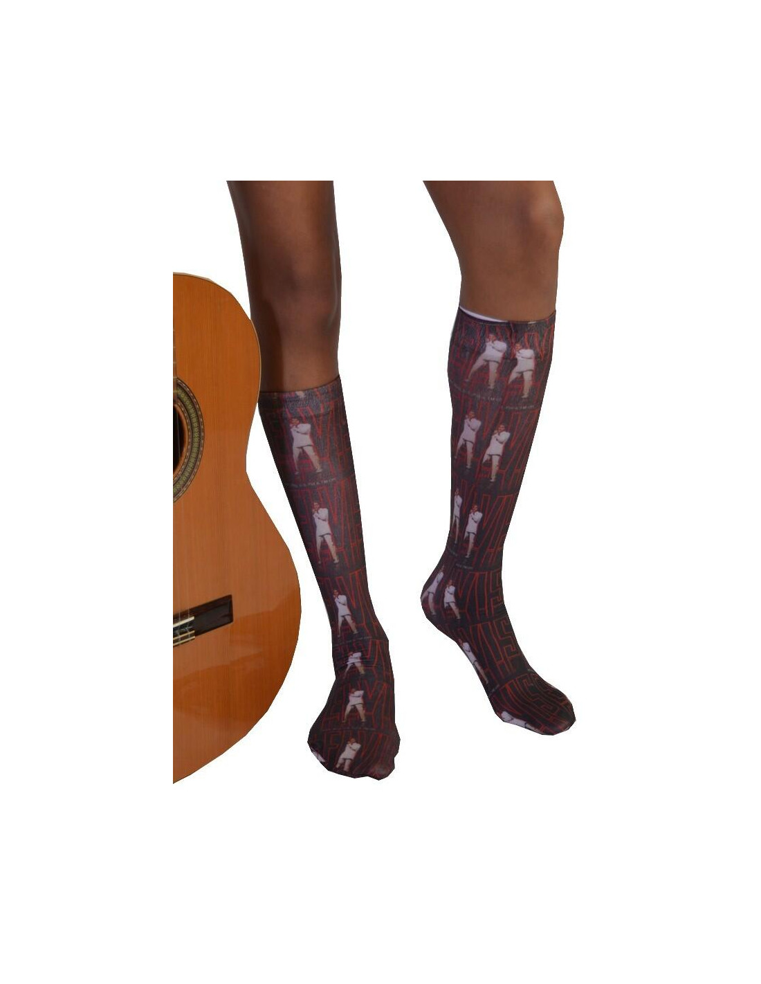 Ces chaussettes sont décorées de  pochettes d'albums "du king" une vrai légende du rock. Qui ne connait pas Elvis Presley, Très rock ces mi bas sont très rigolos à porter sur les jambes. Des chausettes très cool, Let's rock.
