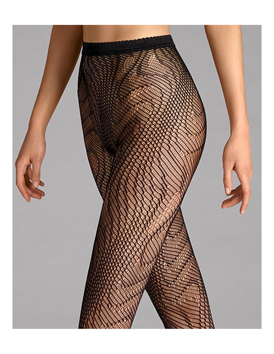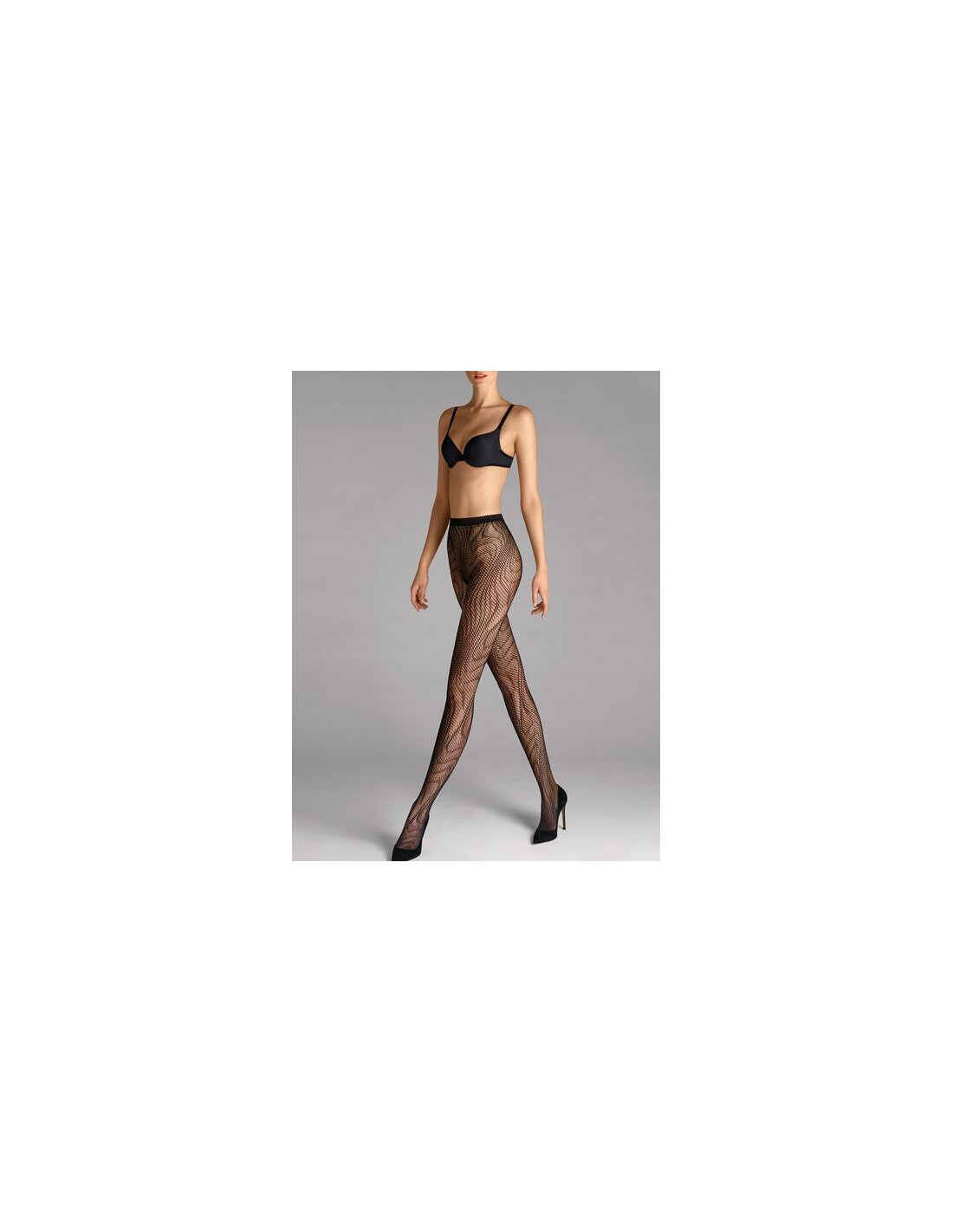Ce collant en maille résille effet ondulé habille la jambe evec un effet optique ludique et chic. Ce collant fait partie des fantaisie intemporelle chez Wolford. Ces collants sont en maille élastique et souple l'effet est très élégant.