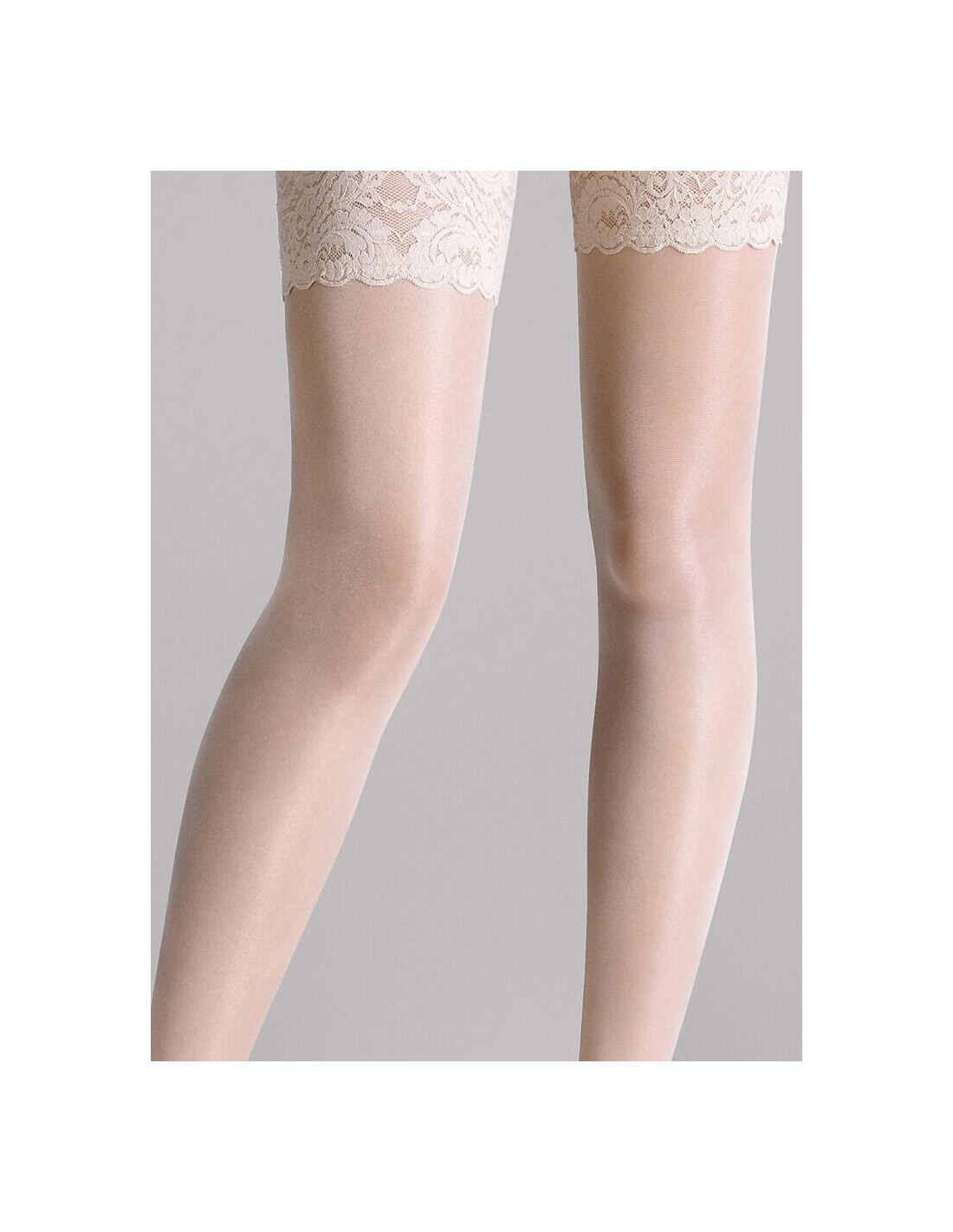 Girardi a choisi un voile élégant et résistant pour mettre les jambes en beauté, une large et magnifique dentelle glamour met les cuisses en complète séduction.