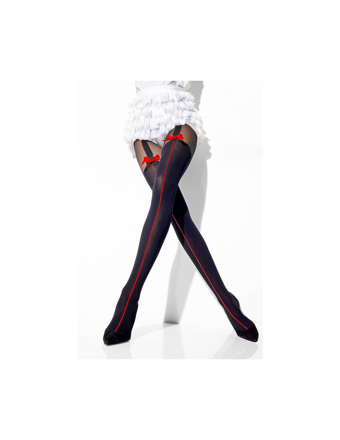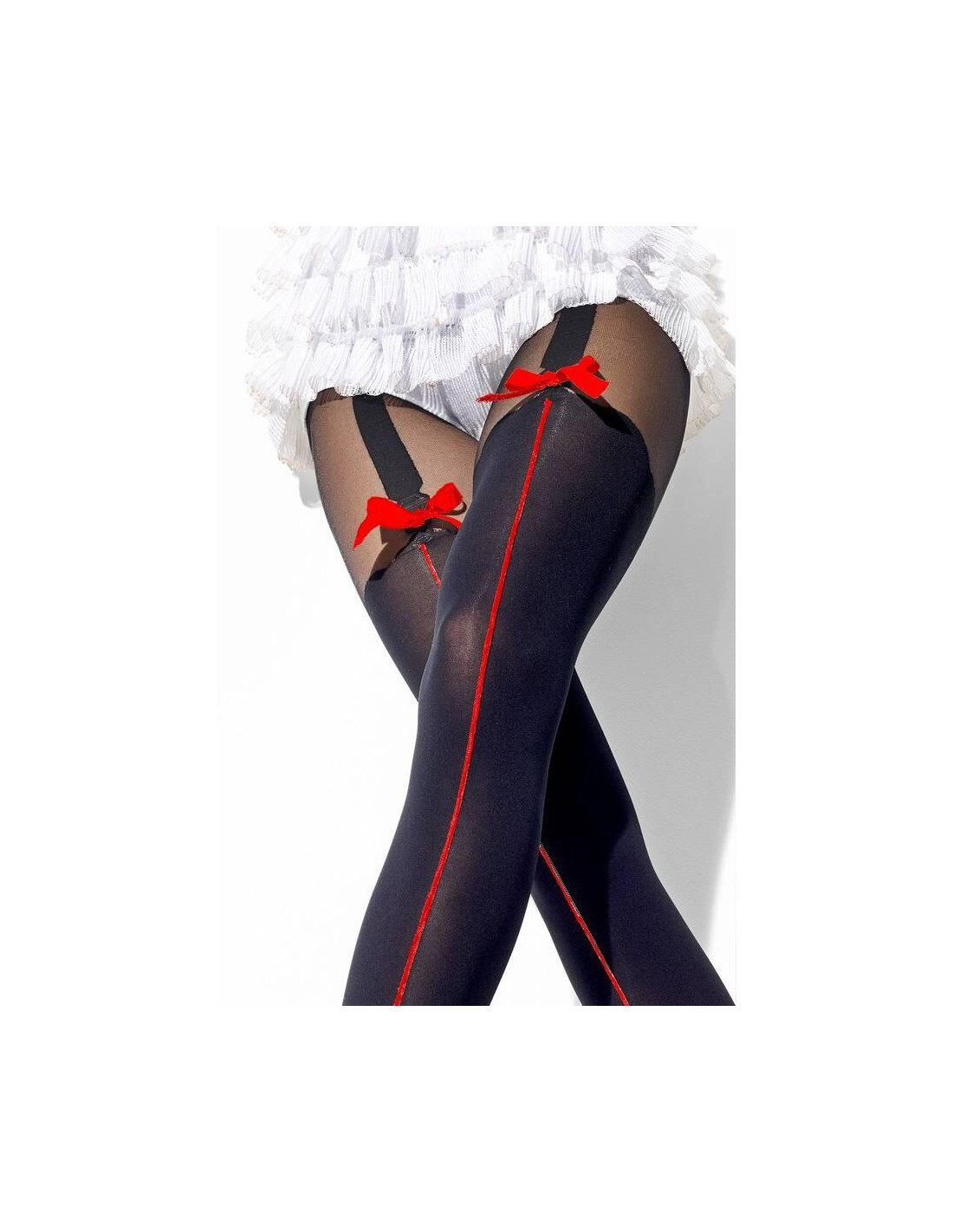 Ces colalnt opaque sont ornés d'une vraie couture Rouge et d'un bel effet bas porte-jarretelles séduction avec un beau ruban rouge