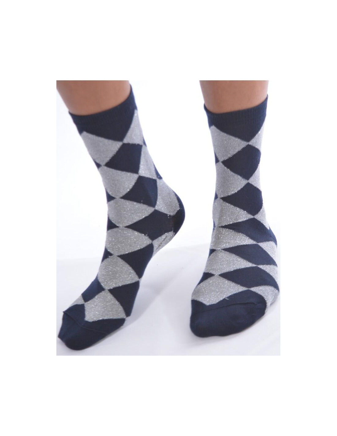 Cahussettes marine argenté carreaux arlequin