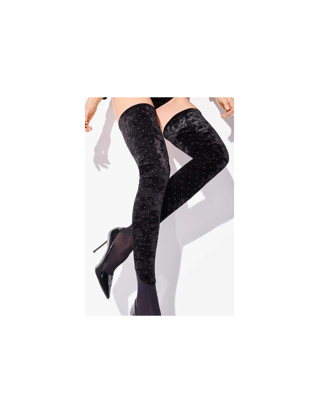 Ces Bas up opaque effet velours opaque sont strassés de façon très baroque et élégante