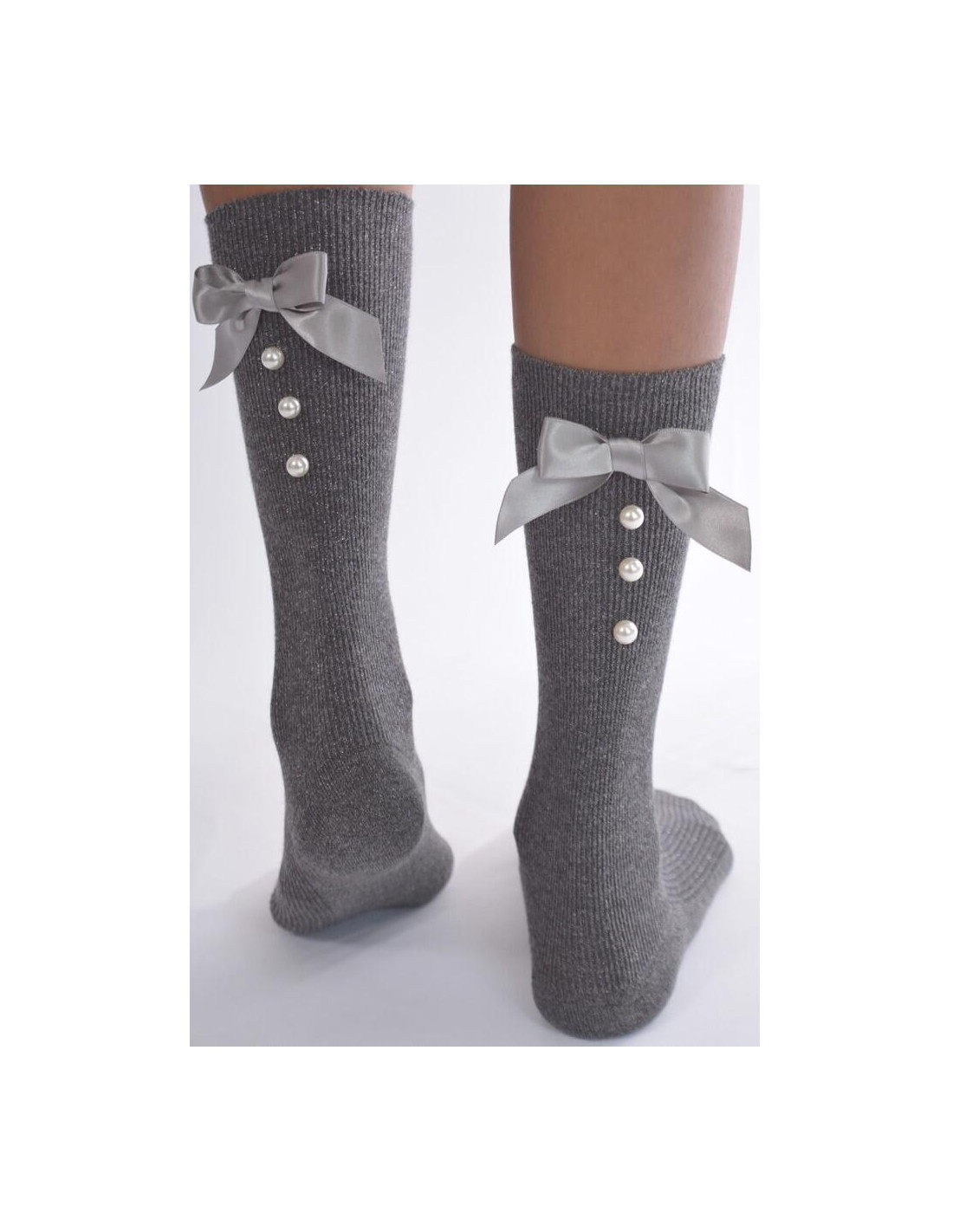 Ces belles chaussettes chics et élégantes ne serrent pas et sont ornées d'un joli ruban à perles