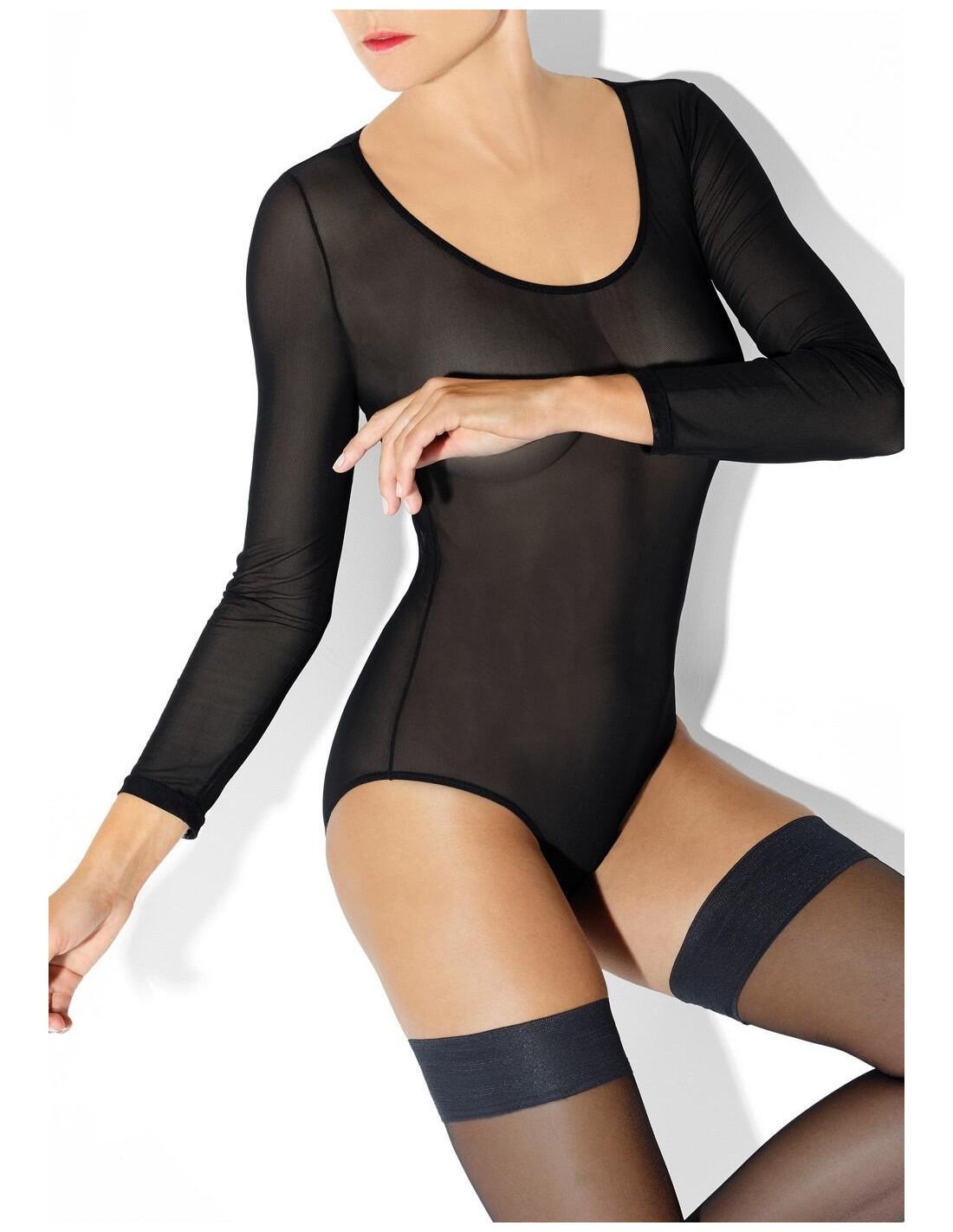 Ce Body col V manches longues est assemblé sur une base de Microfibre tullée douce et sobre, Les finitions au col, aux manchez et sur les hanches sont ornées d'une dentelle douce sensuelle et élégante,